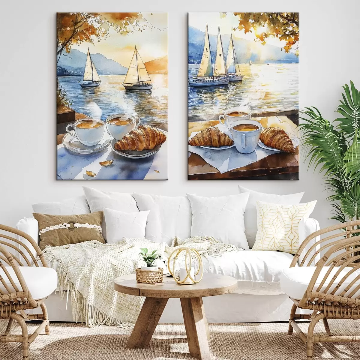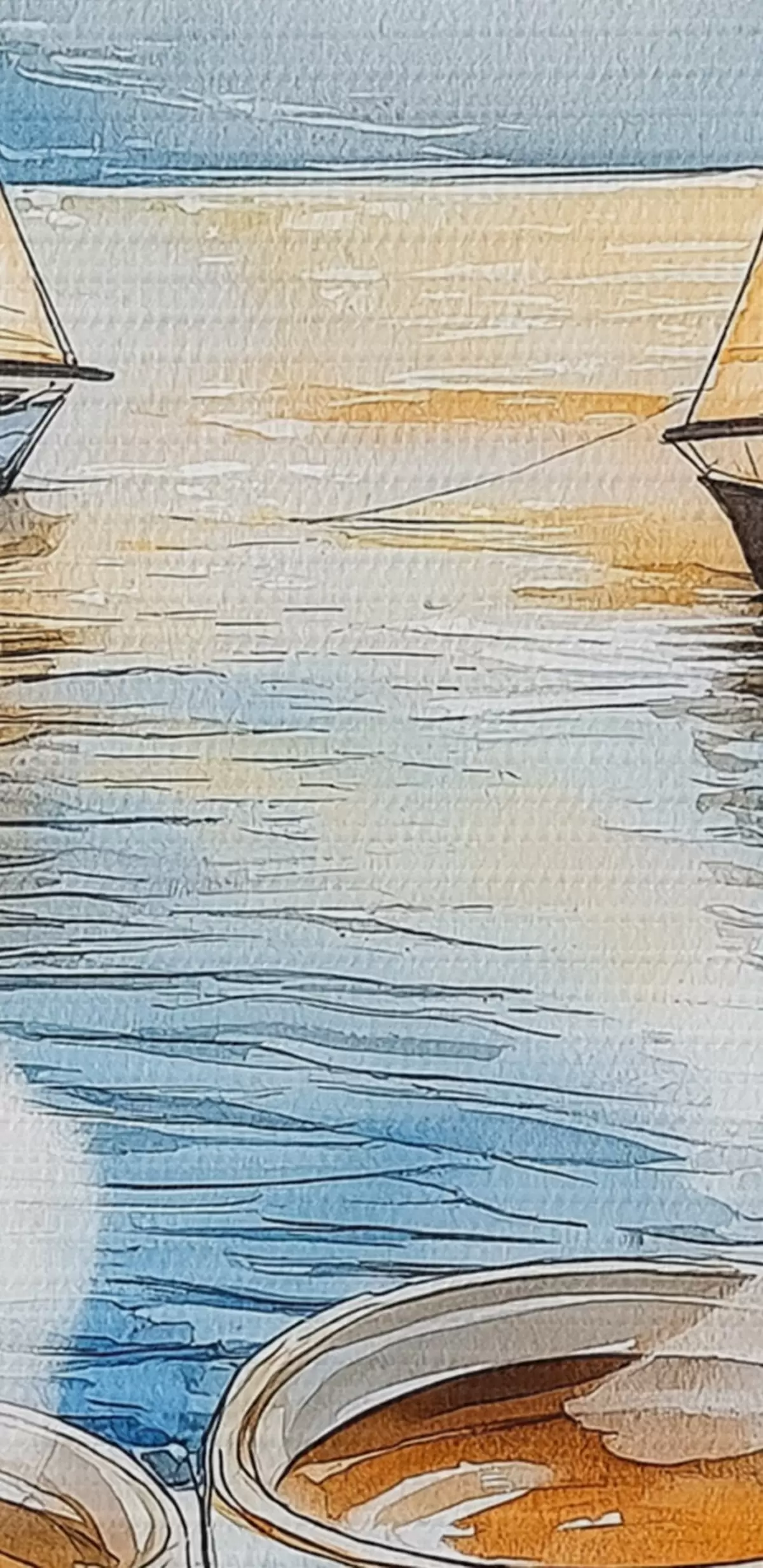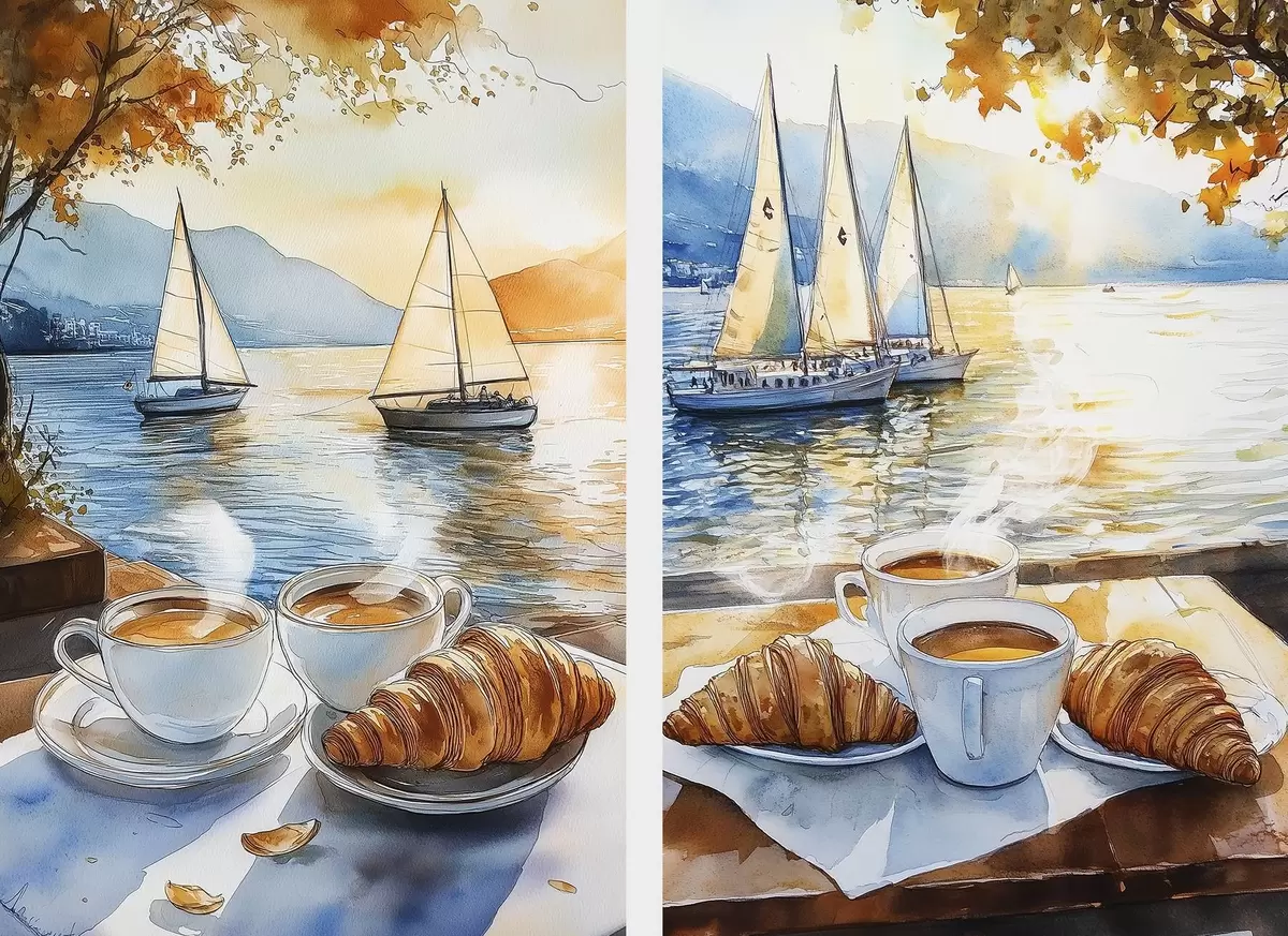 Picture Sunset on the lake with ups of coffee, sailboats, nature, travel Nr m00407