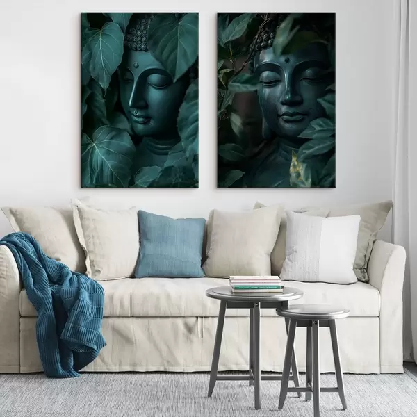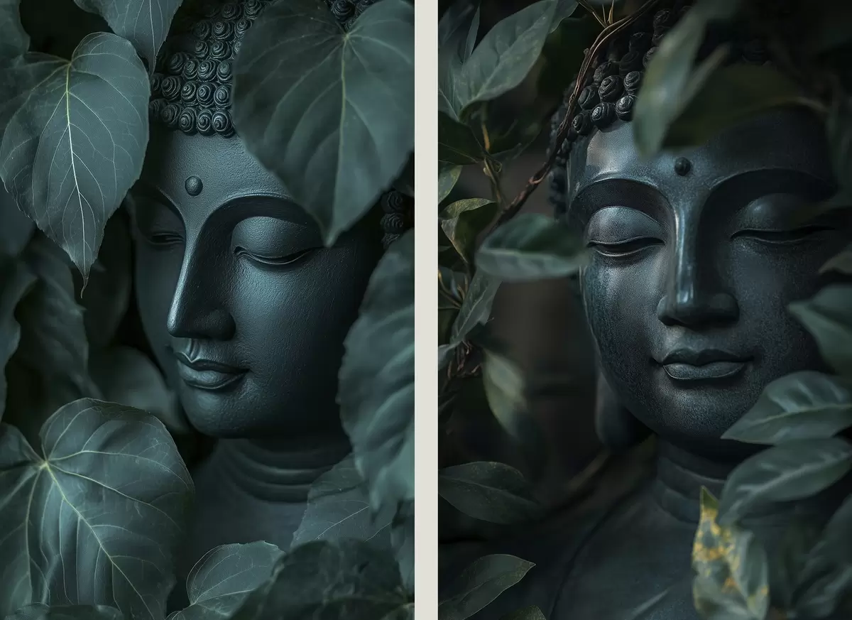 Picture Meditative Buddha in the green leaves, Buddhism, tropical, realism Nr m00447