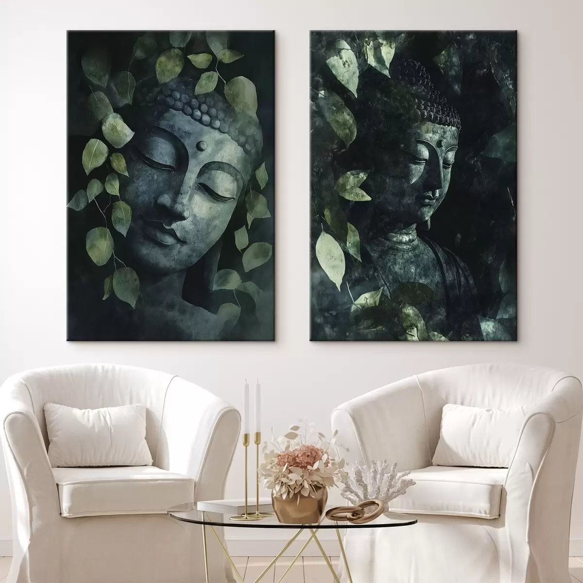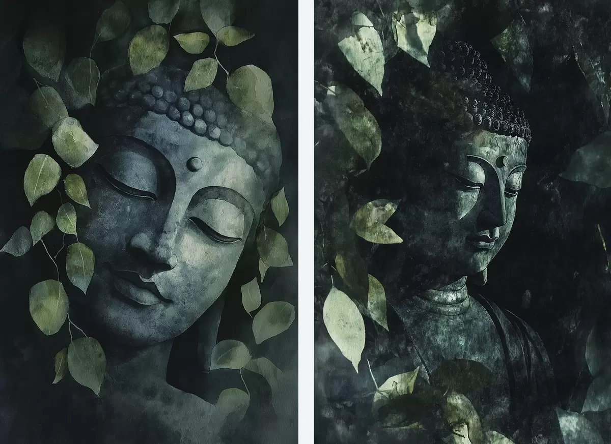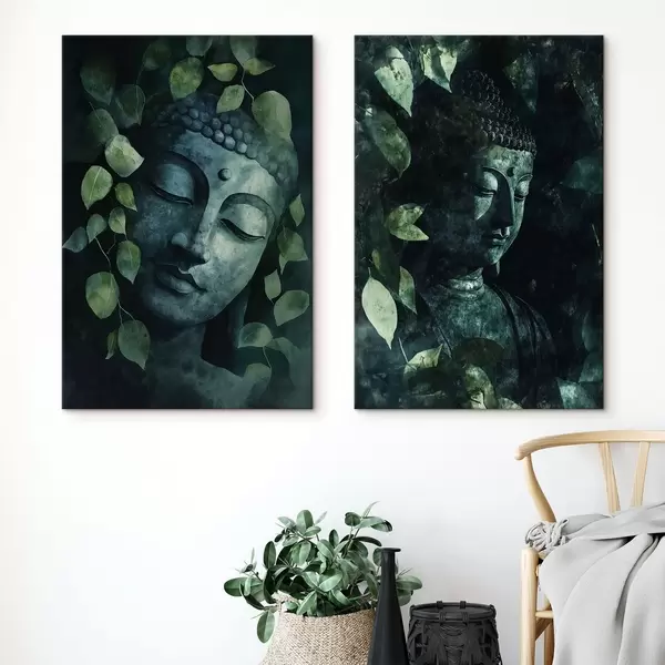 Picture Green Buddha in tropical leaves, watercolor style Nr m00451