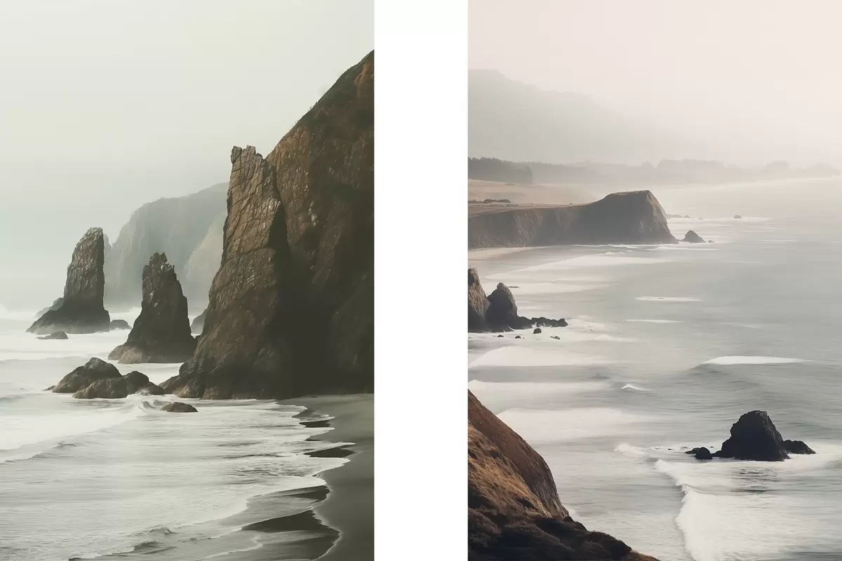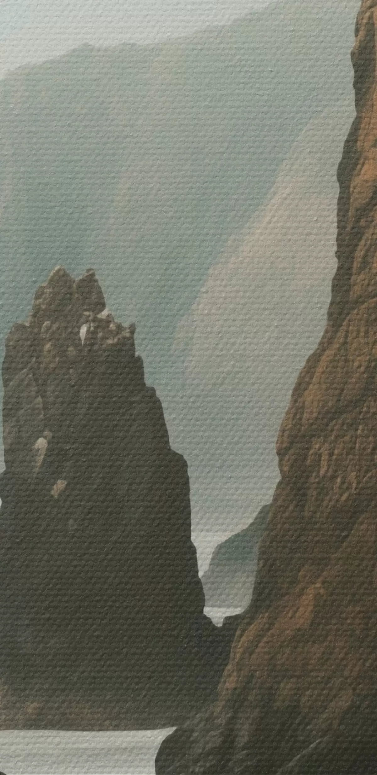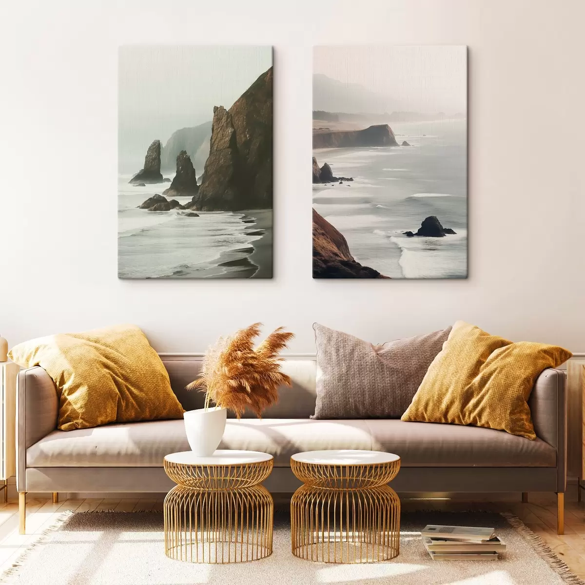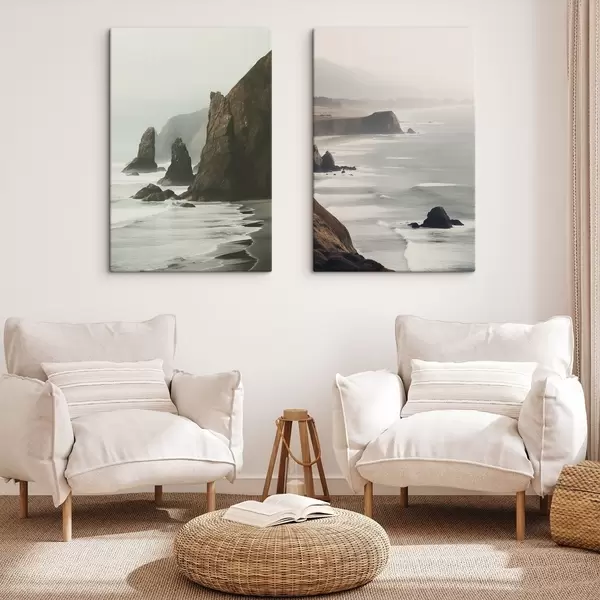 Picture Rocky cliffs and sea coastline, waves crashing on the shore,landscape with a moody atmosphere, earthy tones Nr m00531