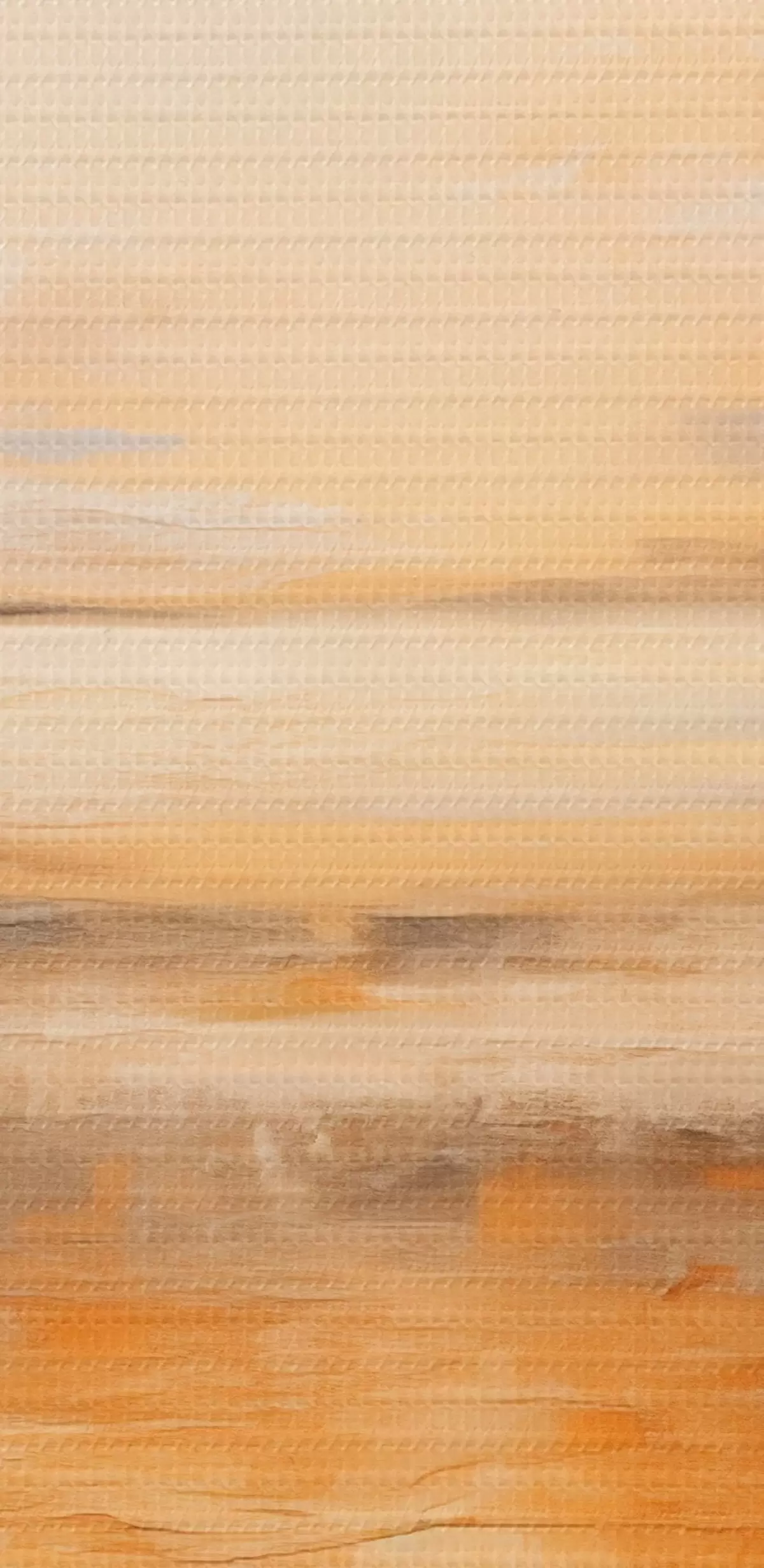 Picture An abstract painting of a beach landscape with a calm ocean , orange sand and a cloudy sky with sun Nr m00653