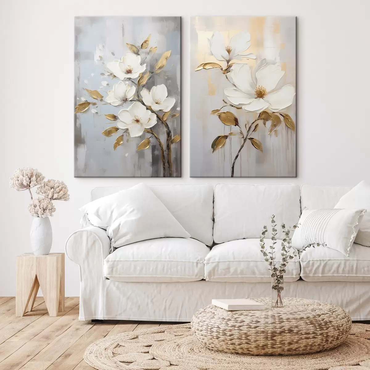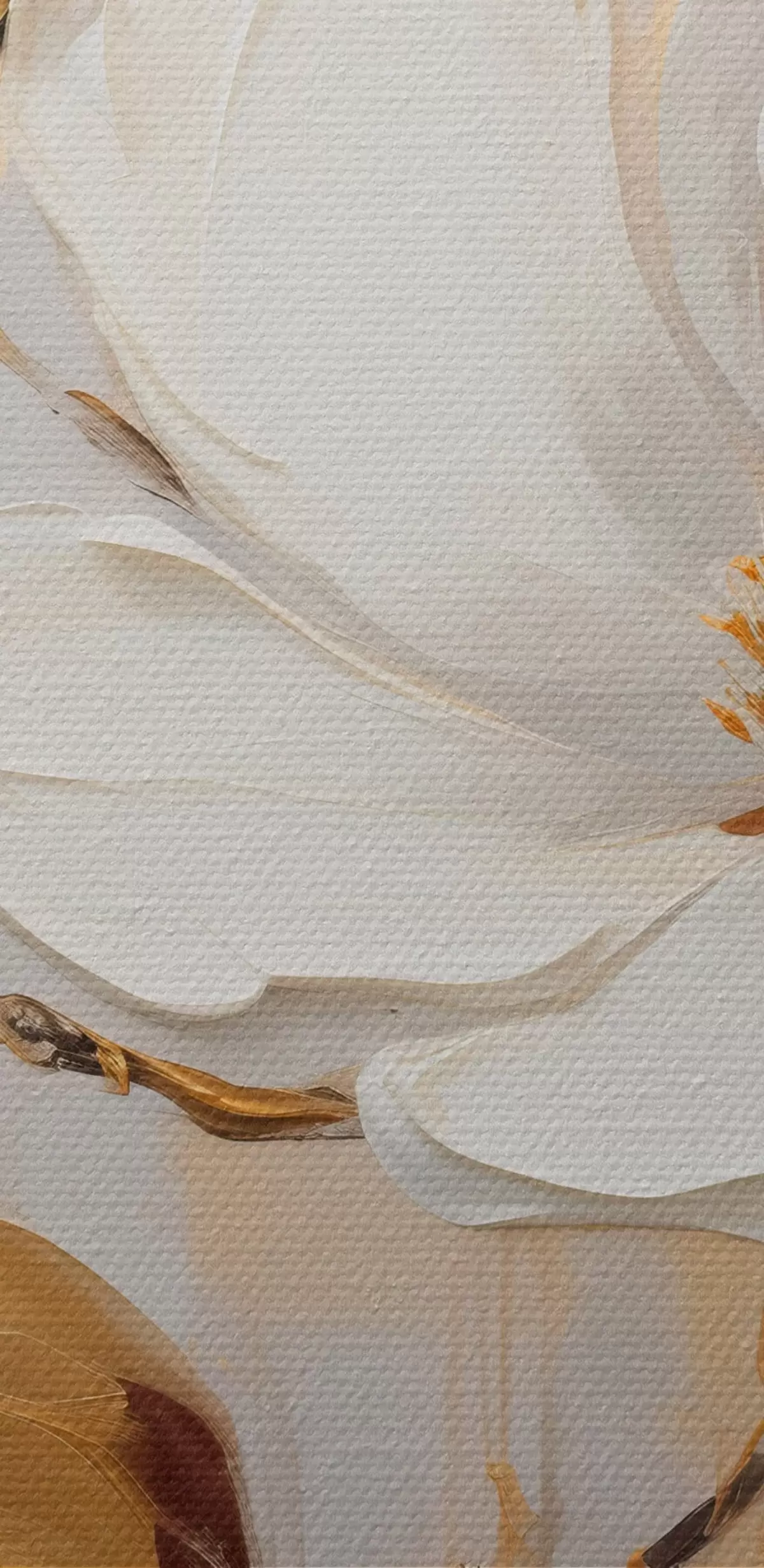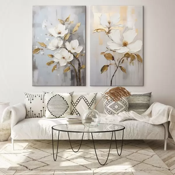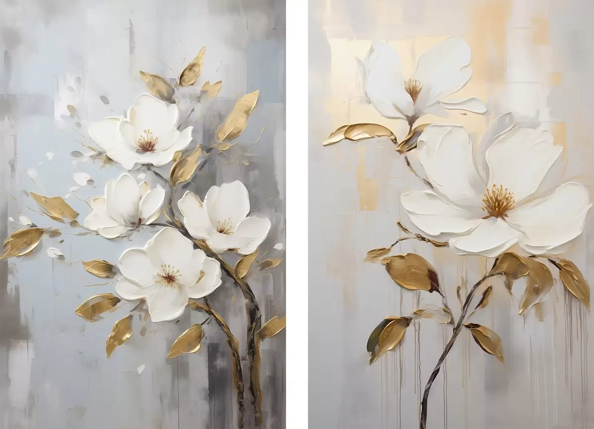 Picture Two white flowers with yellow-orange leaves on a light background Nr m00687