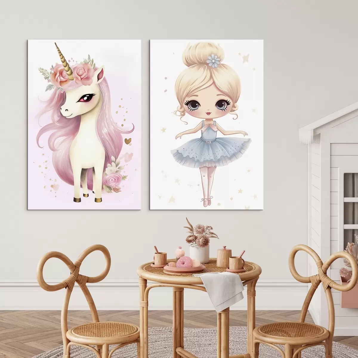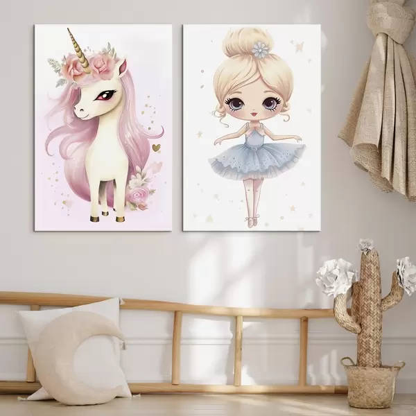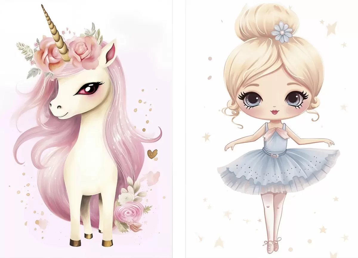 Picture Ballerina doll in a blue dress and unicorn with pink mane Nr m00692