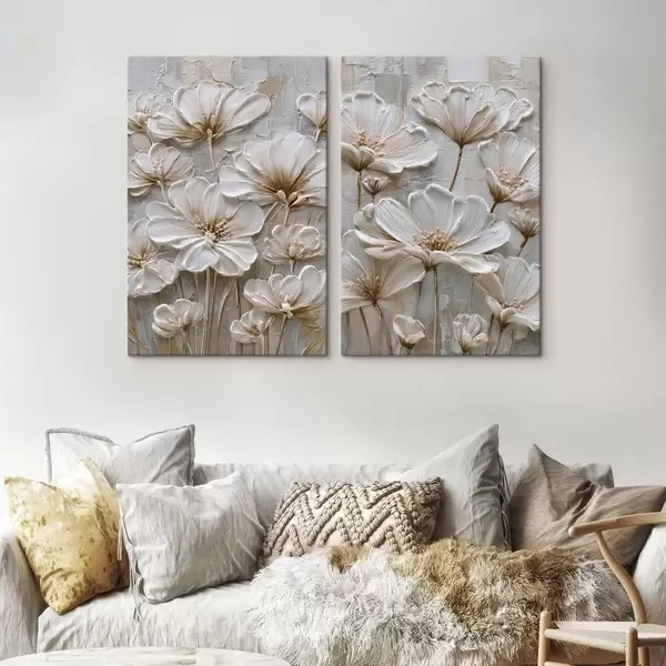 Picture cream flowers with imitation impasto style Nr m00701