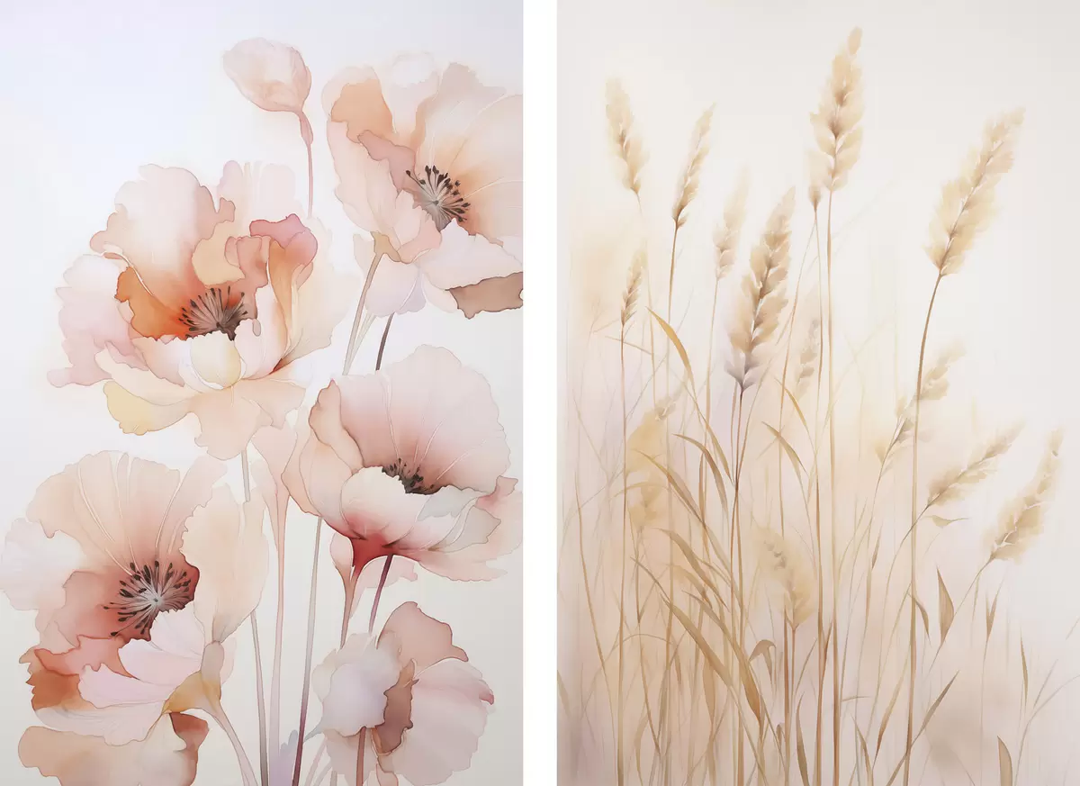 Picture Poppies and spikelets imitation watercolor Nr m00723