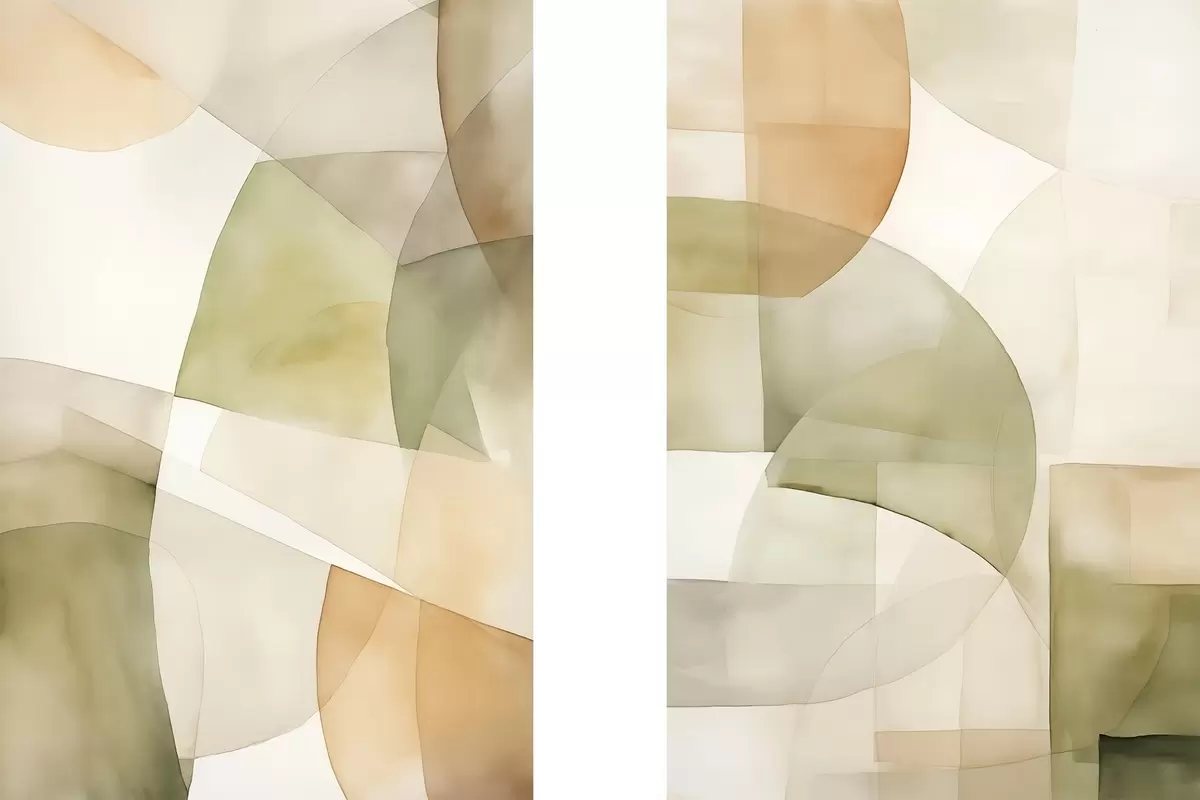 Picture Abstract watercolor textured geometric shapes in shades of green, brown, and beige Nr m00820