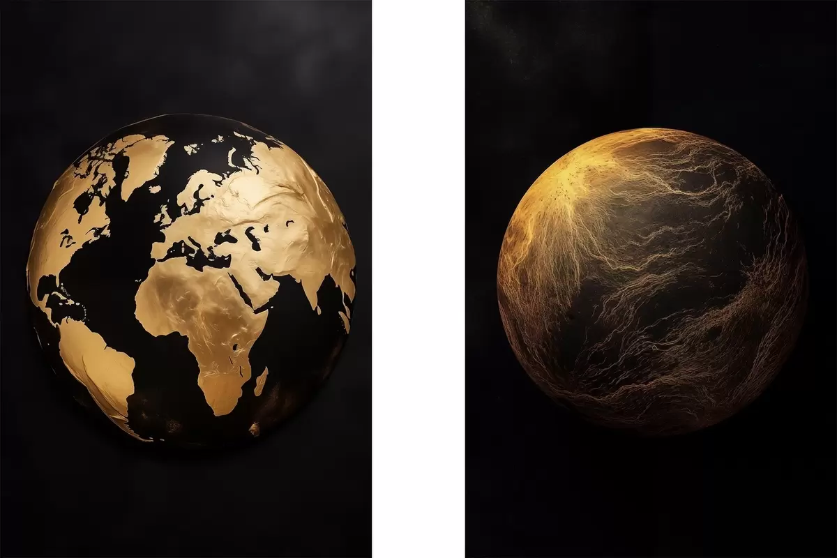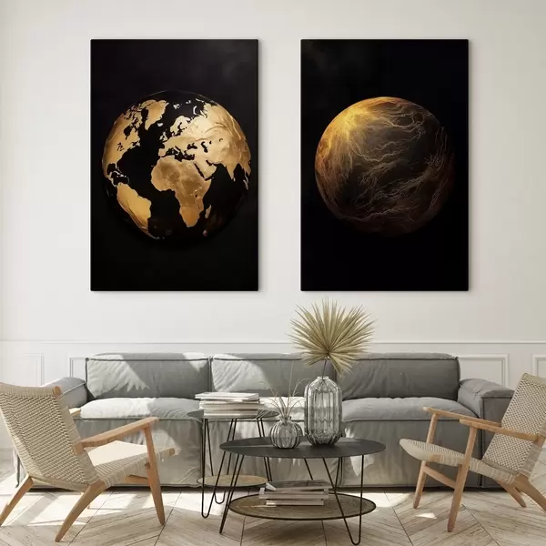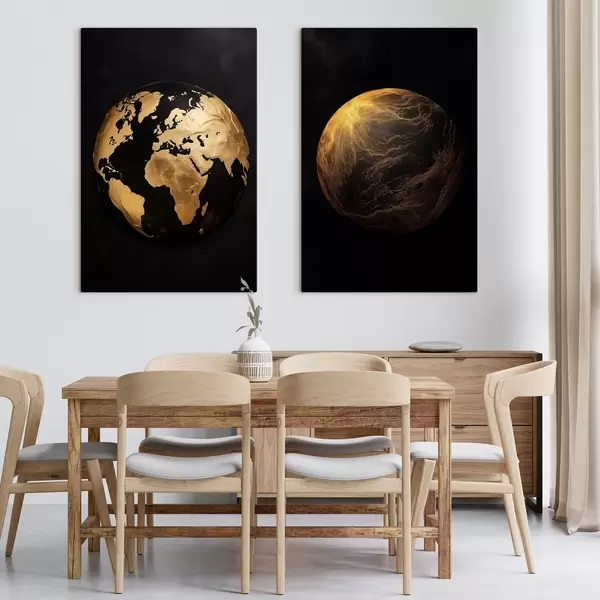 Picture Textured abstract earth globe and planet on a black background, modern minimalist art Nr m00827
