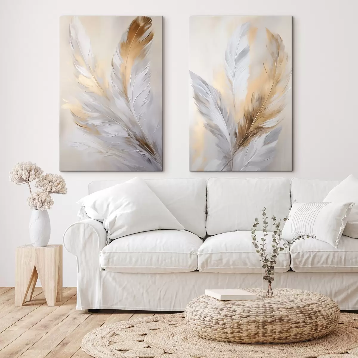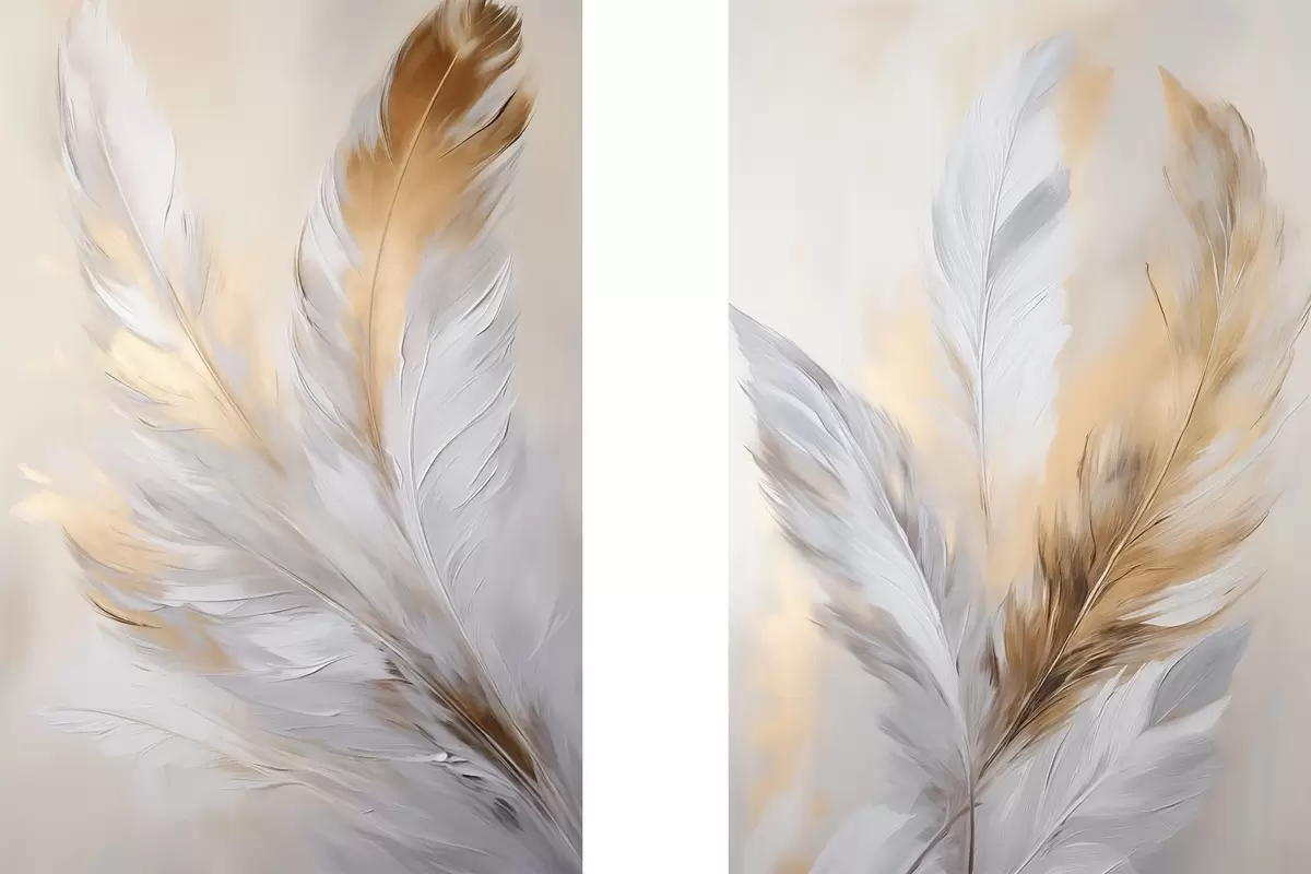 Picture Feathers with orange accents, textured minimalist composition, modern art Nr m00828