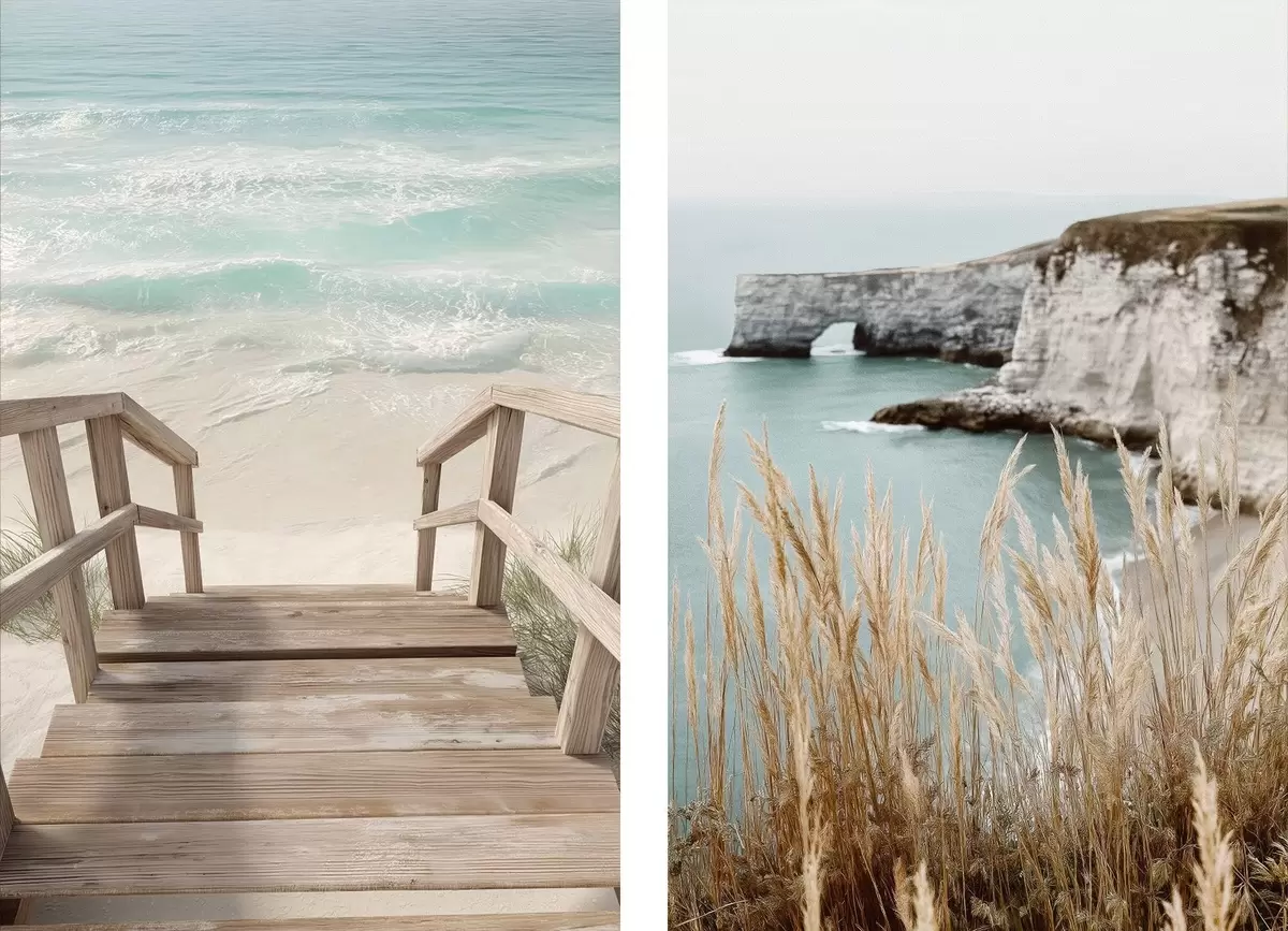 Picture Coastal cliffs and dry grasses by the turquoise sea Nr m00875