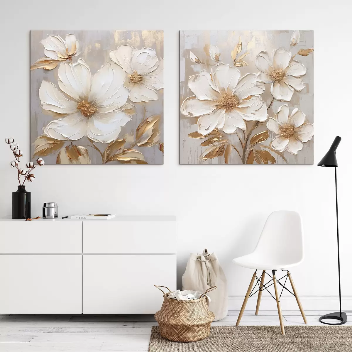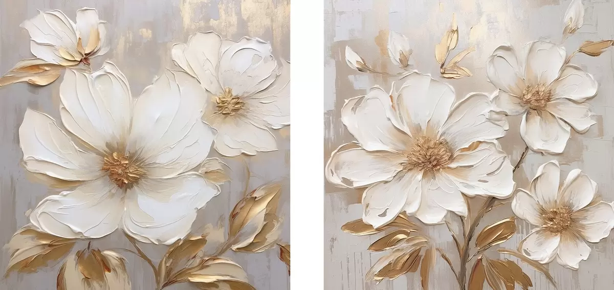 Picture Diptych with large flowers in light warm colors Nr m00927