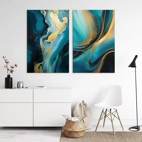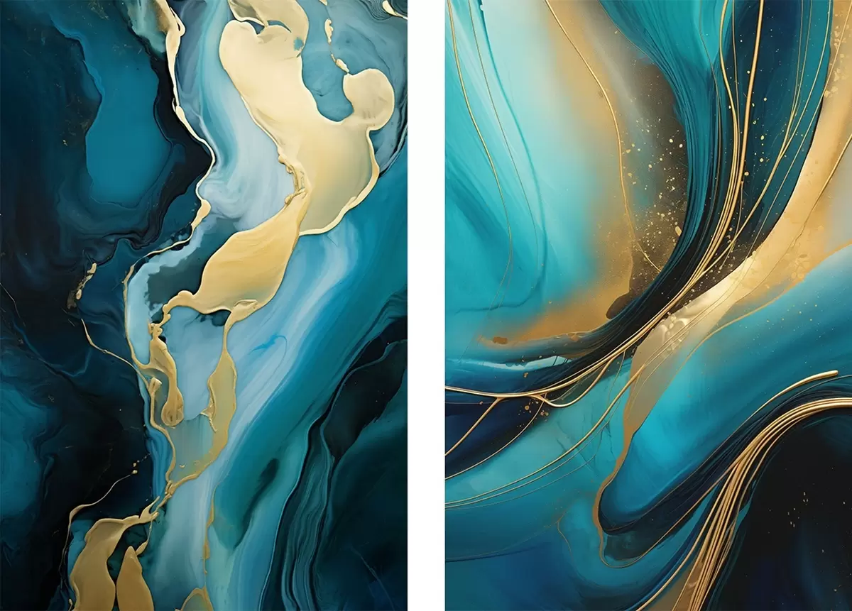 Picture Teal fluid abstract with warm metallic streams Nr m00965
