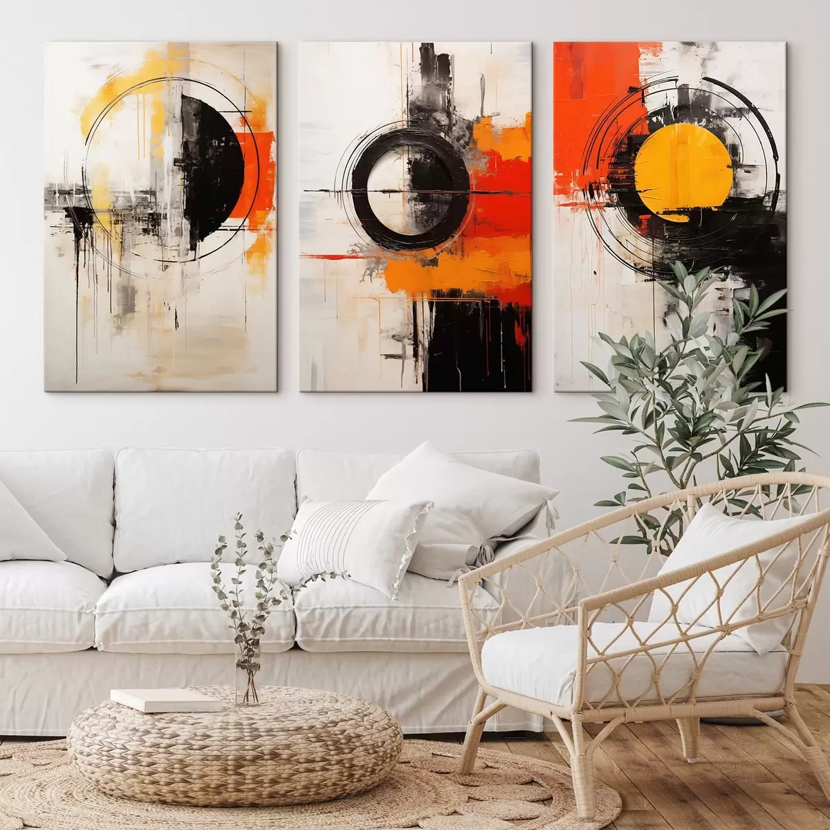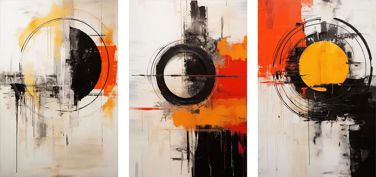 Picture Textured circles and bold strokes in black, ochre, orange Nr m00974