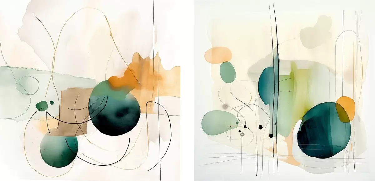 Picture Two-part abstract composition with soft color patches Nr m00985