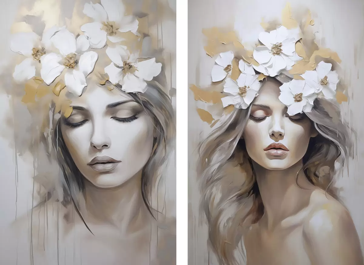 Picture Abstract portrait of a girl with flowers imitation of painting Nr m01034