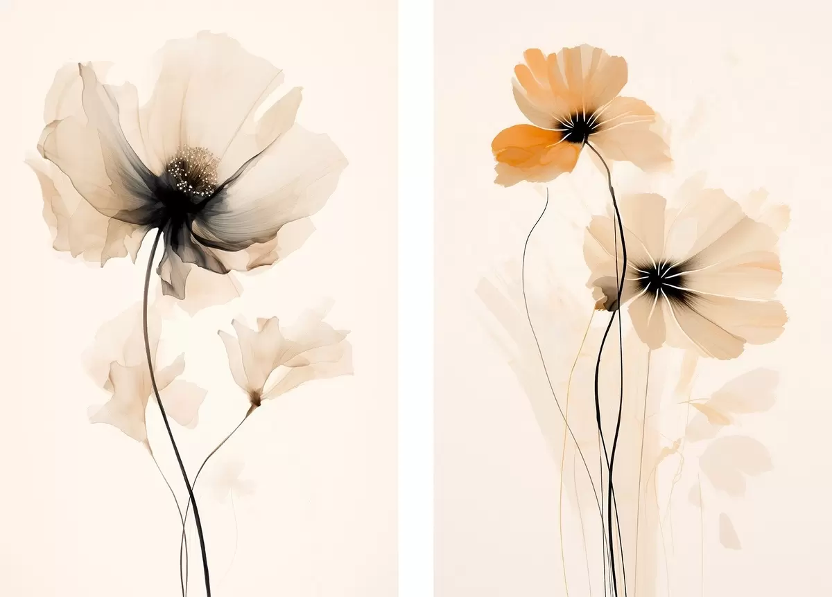 Picture Light watercolor poppies with soft shadows and airy space Nr m01091