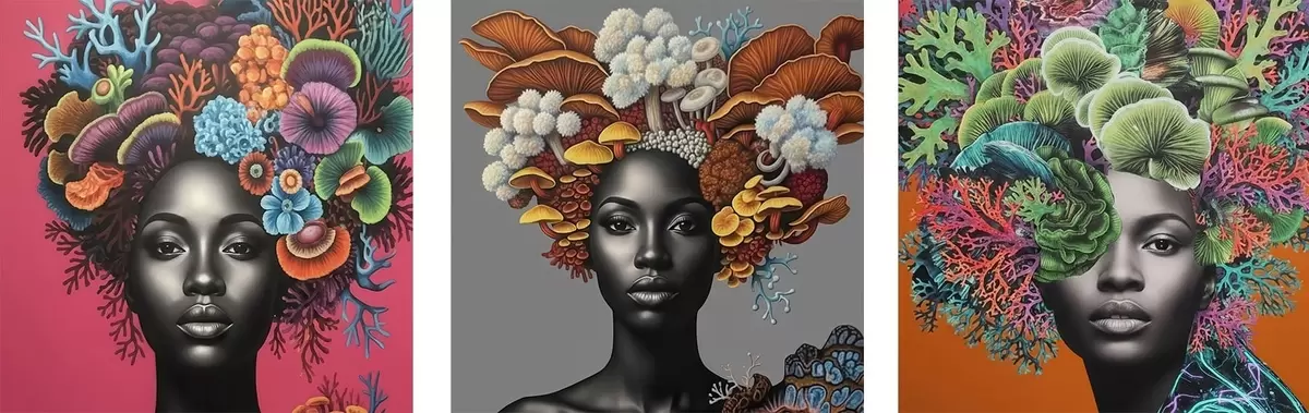 Picture Psychedelic portrait of a woman with mushrooms Nr m01308