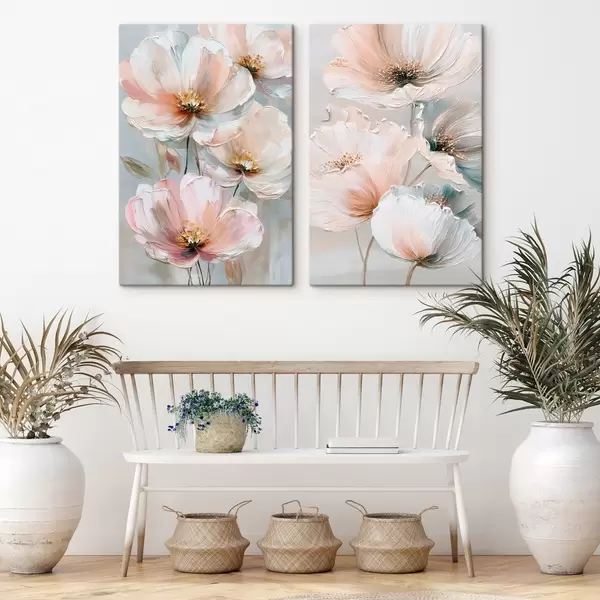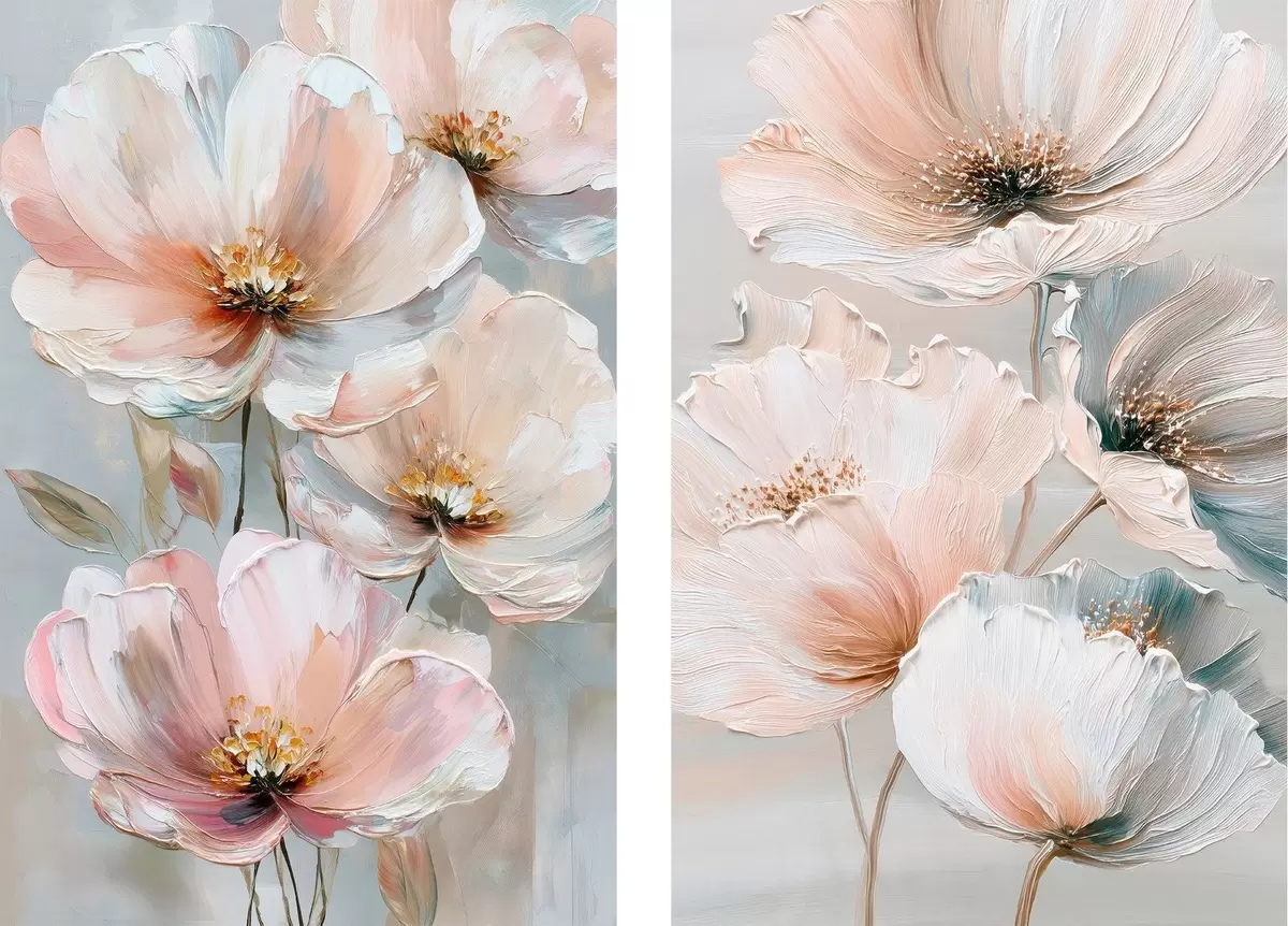 Picture Floral diptych in a beige-coral palette in an oil painting style Nr m30029