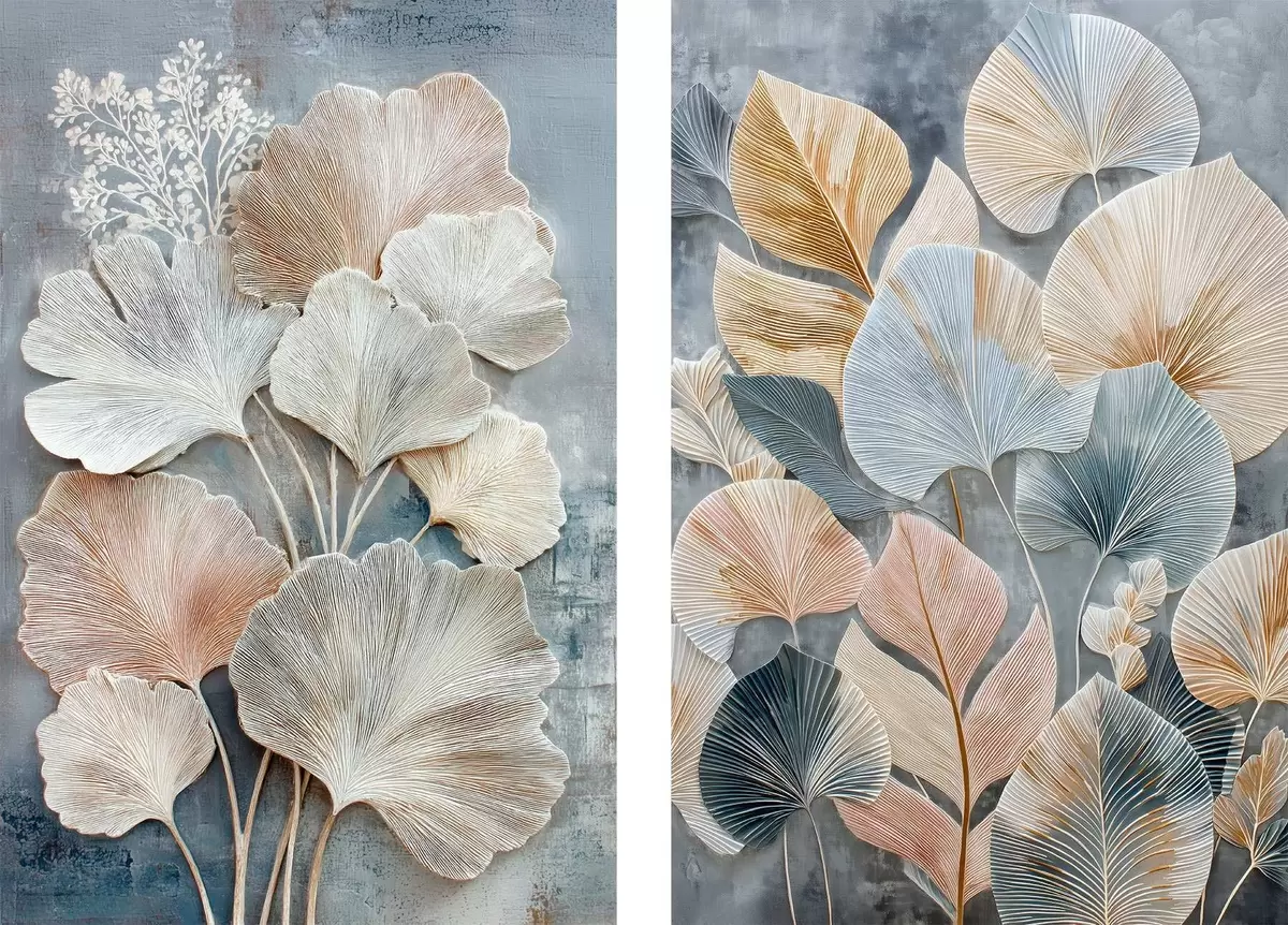 Picture Abstract composition with decorative foliage in a gray-beige palette Nr m30030