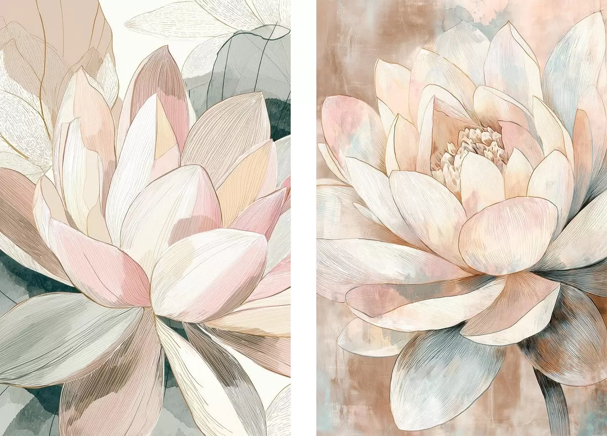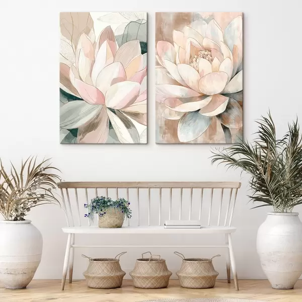 Picture Floral composition with large lotuses in a pastel-coral palette Nr m30034
