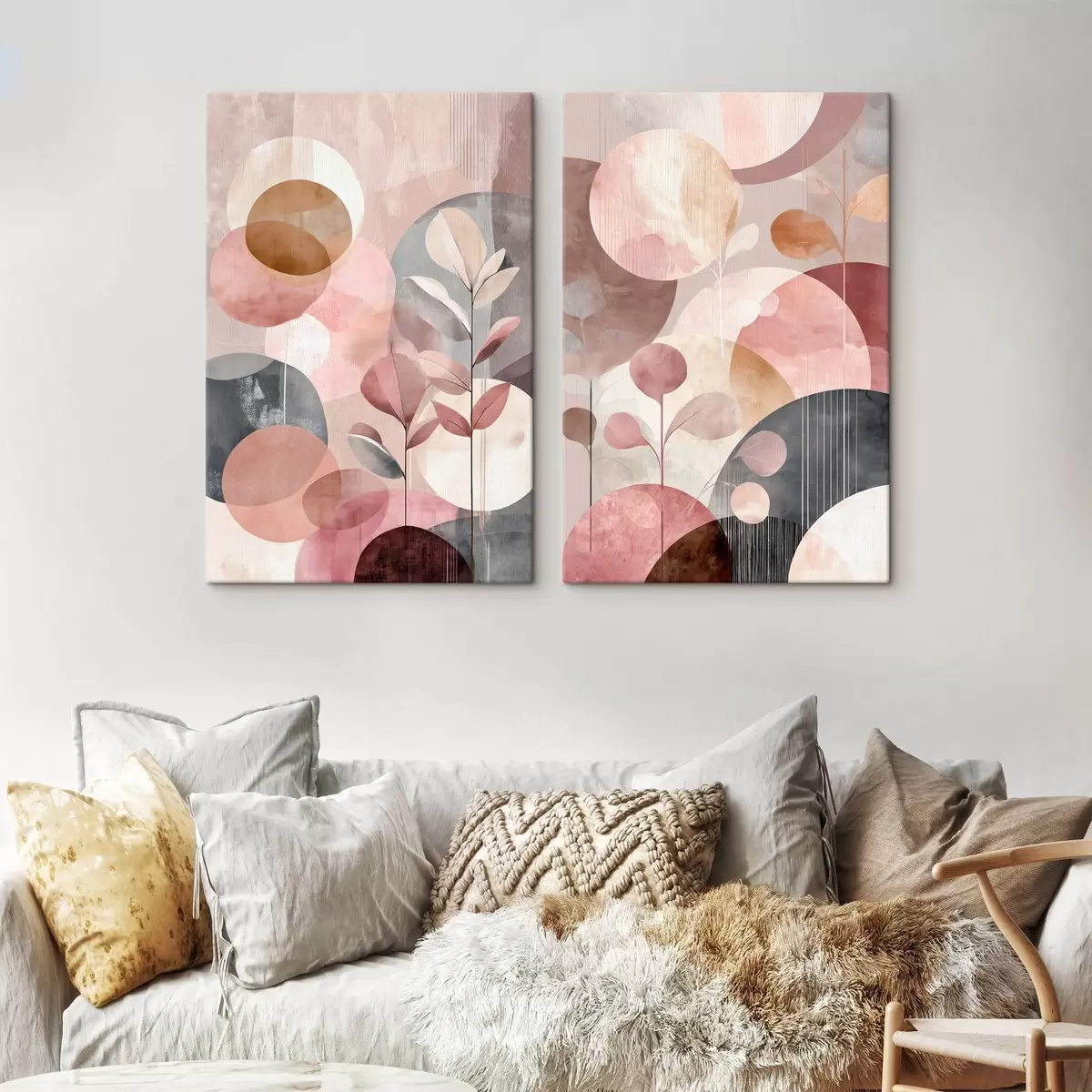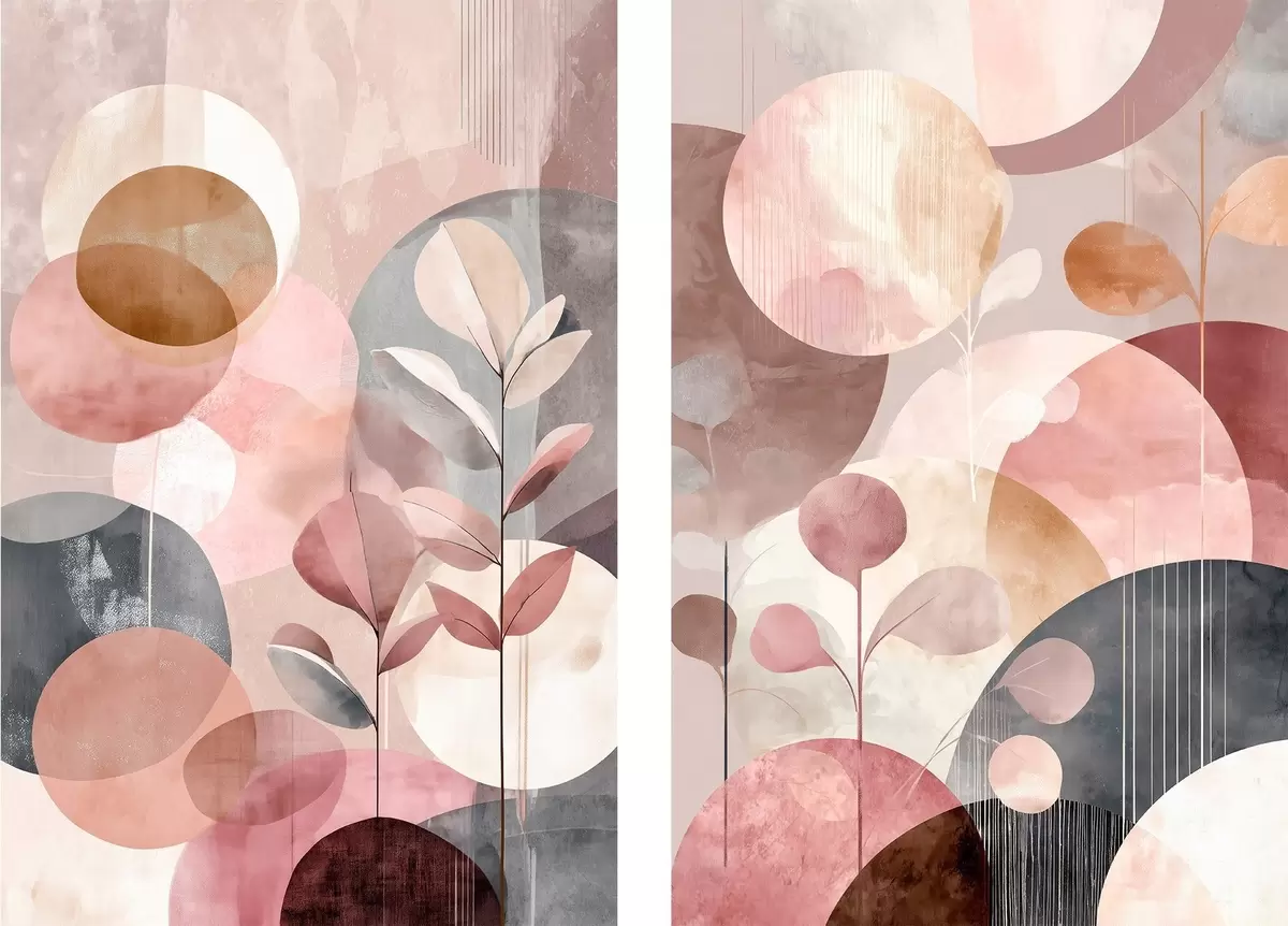 Picture Floral art in pastel tones with geometric elements Nr m30036