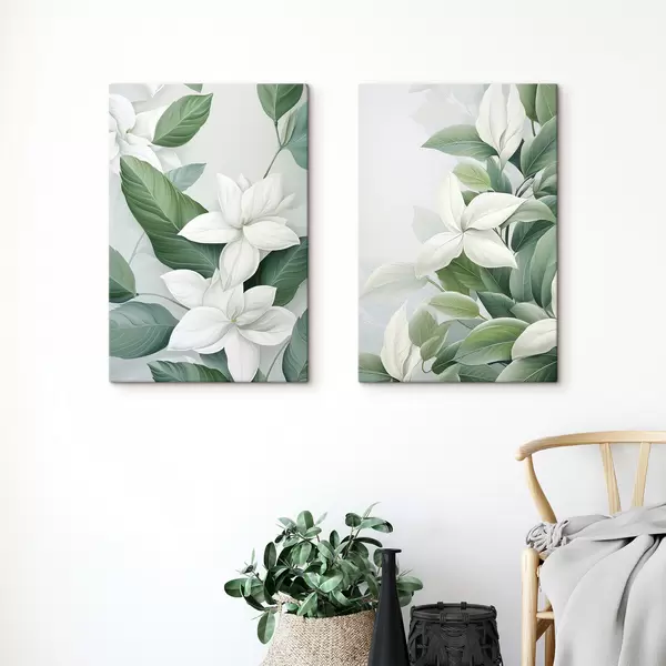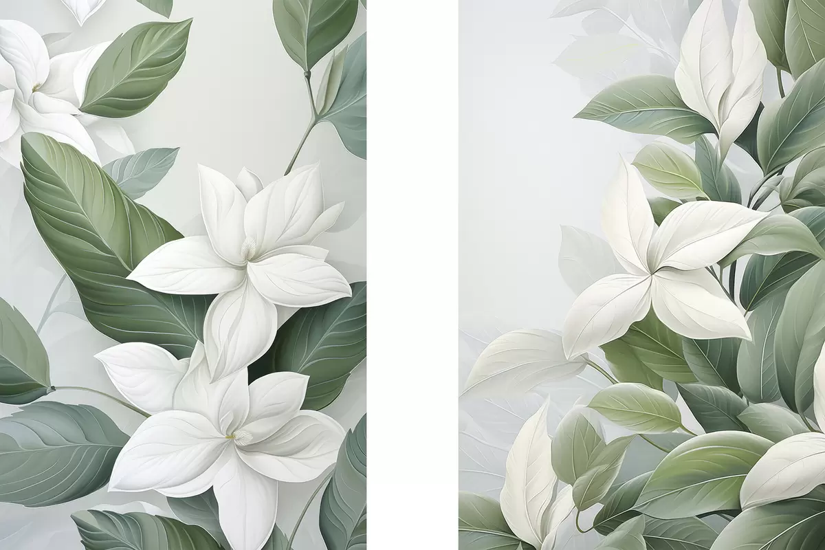 Picture White flowers with green leaves, pastel background Nr m30055
