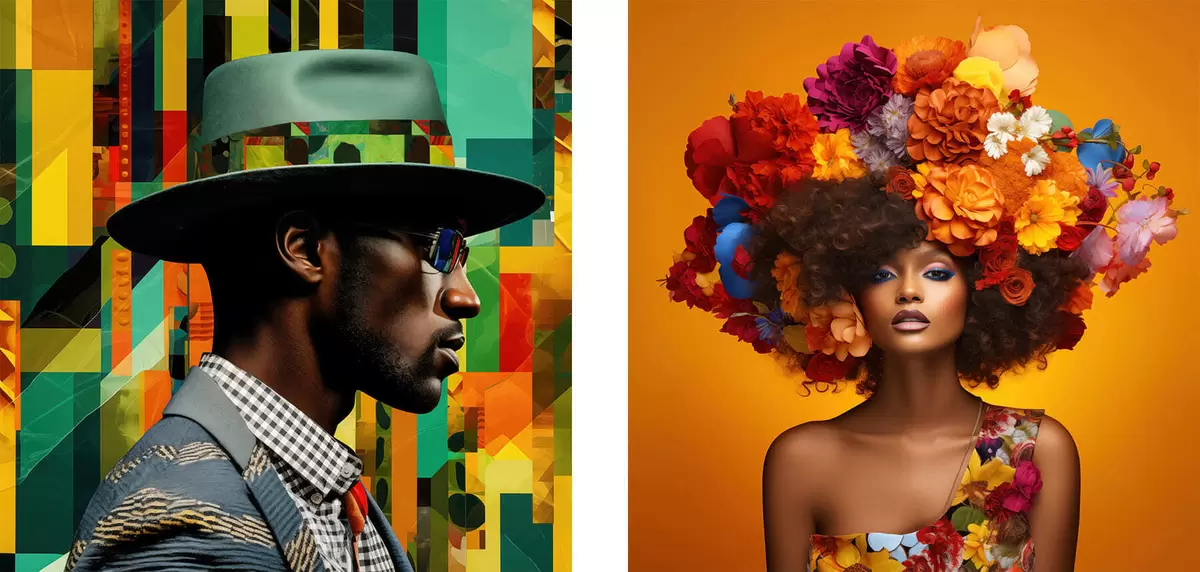 Picture Portrait of a man in a hat and a woman with a large flower wreath Nr m30102