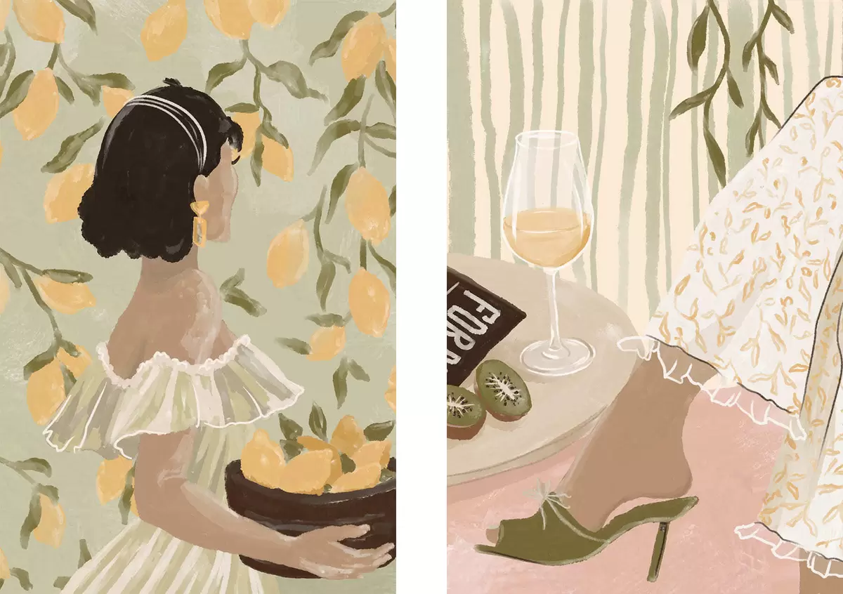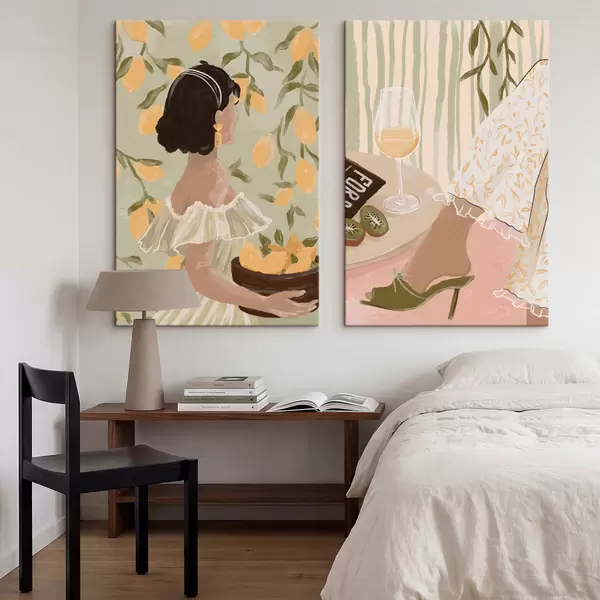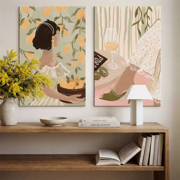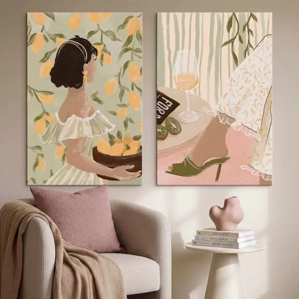 Picture Woman with lemons and table with glass Nr m30104