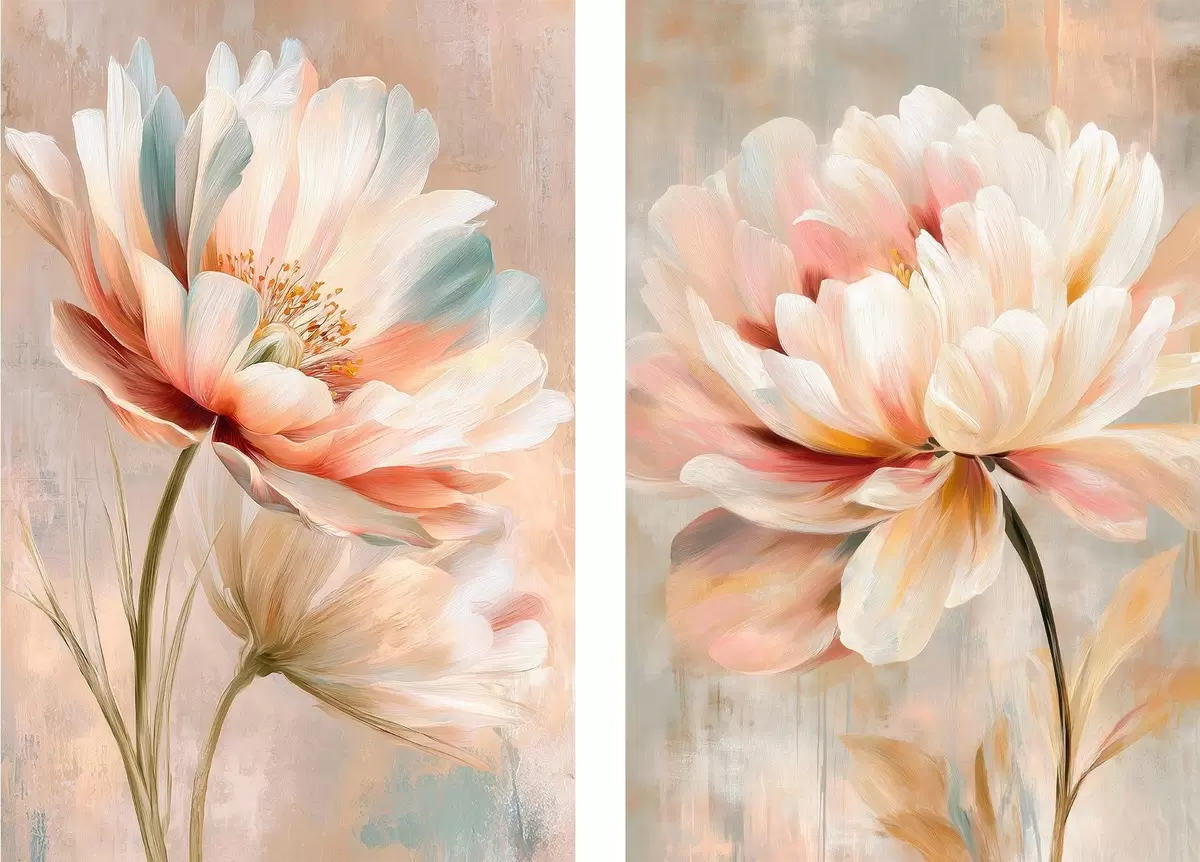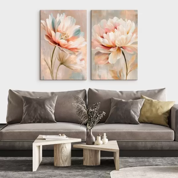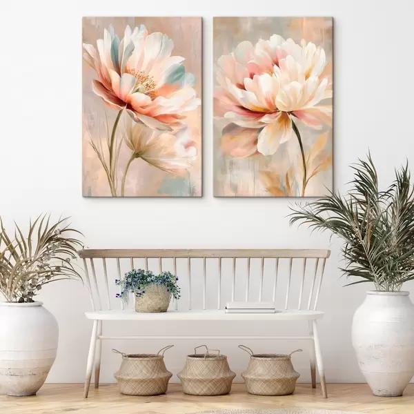 Picture Diptych with large flowers in beige and pink palette in art poster style Nr m30134