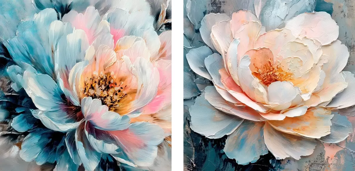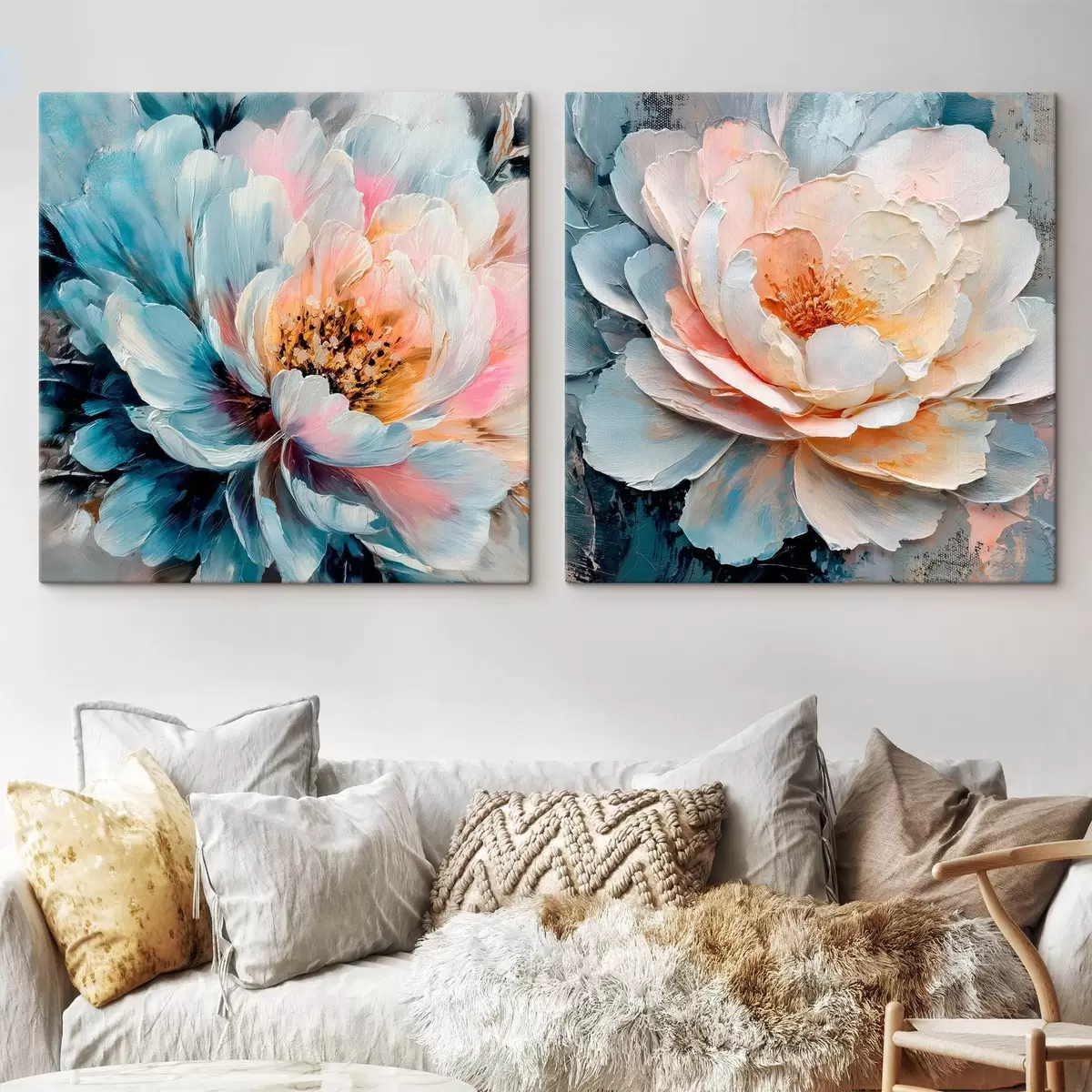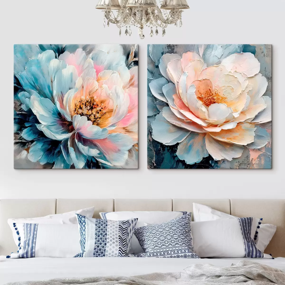 Picture Abstract floral composition in pink and blue palette with textured petals Nr m30148