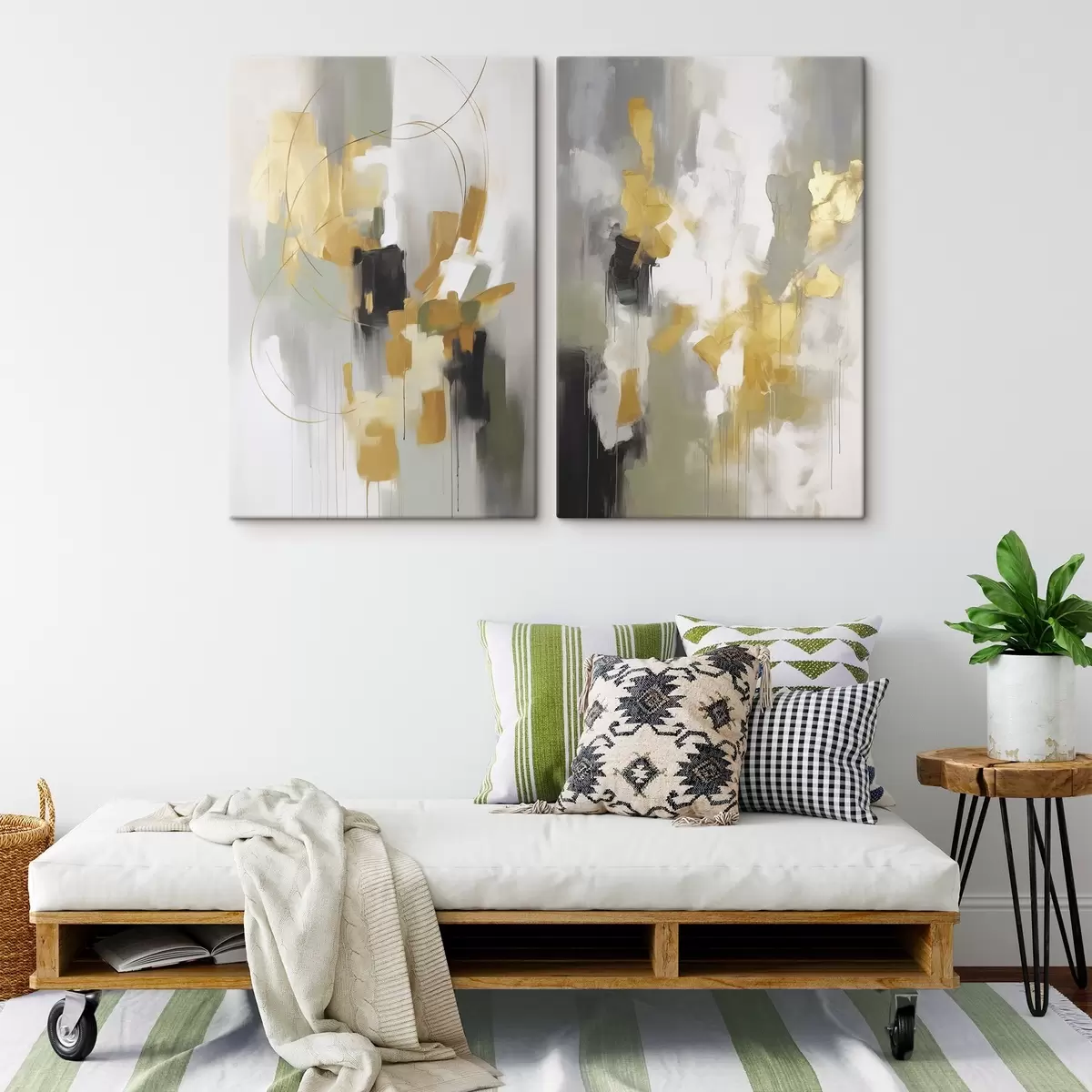 The painting can be hung immediately after receiving it. The painting will be stretched on 2 cm wide wooden stretcher.