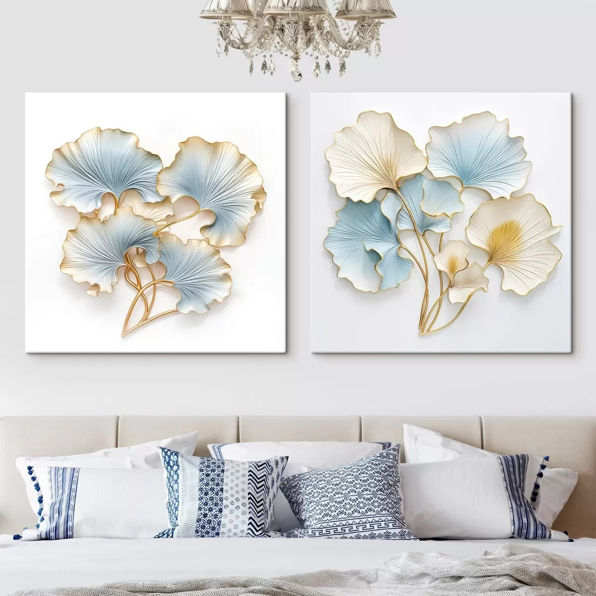 Picture Stylized ginkgo leaves with blue and yellow accents Nr m30203