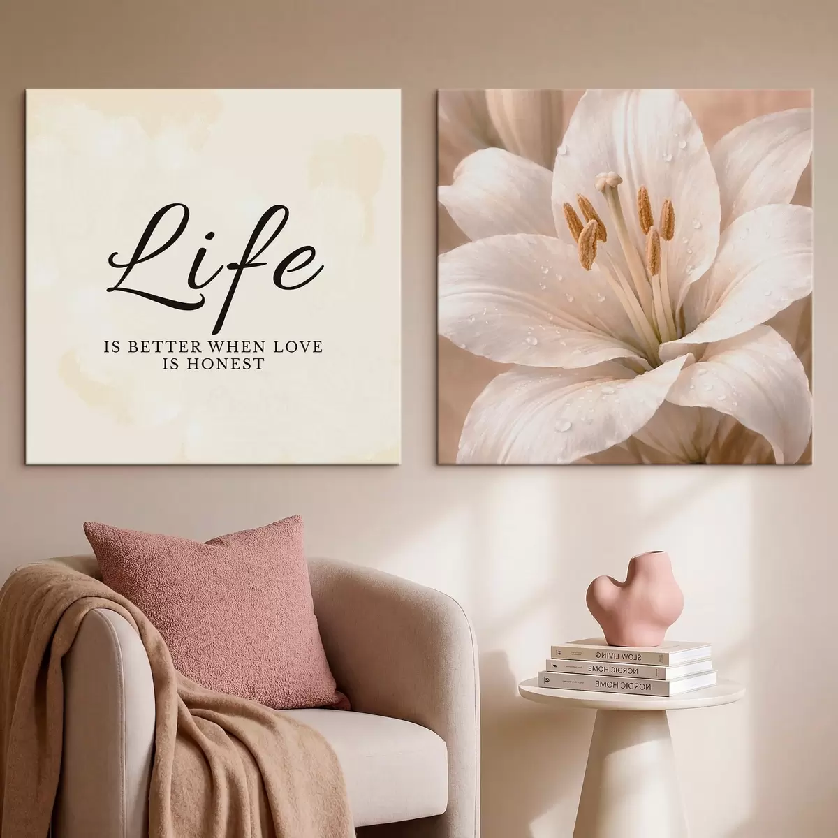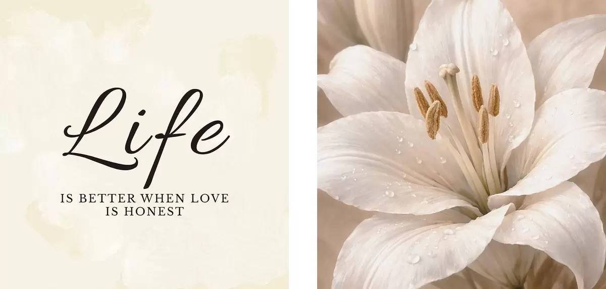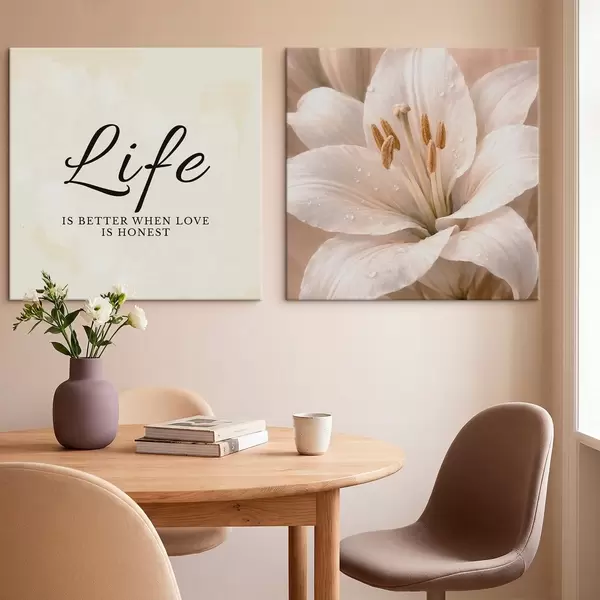 Picture Diptych with Life text and white flower close-up Nr m30237