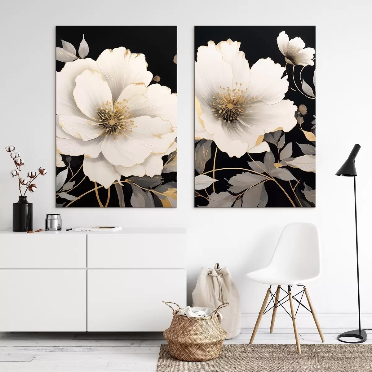 Picture white flowers on a black background Nr m30280