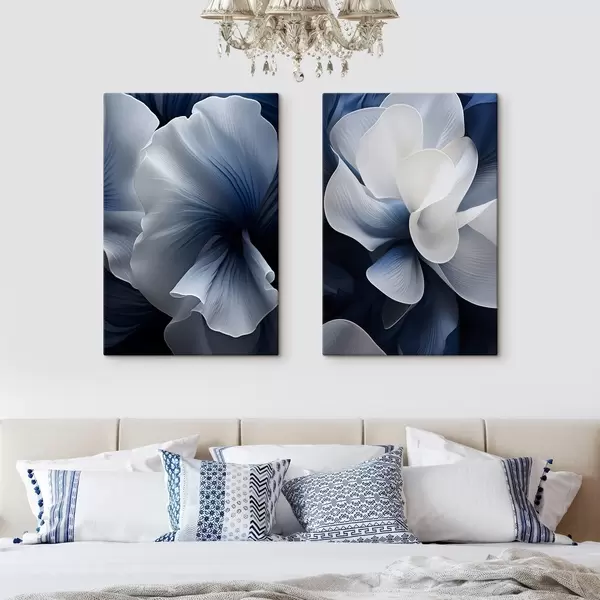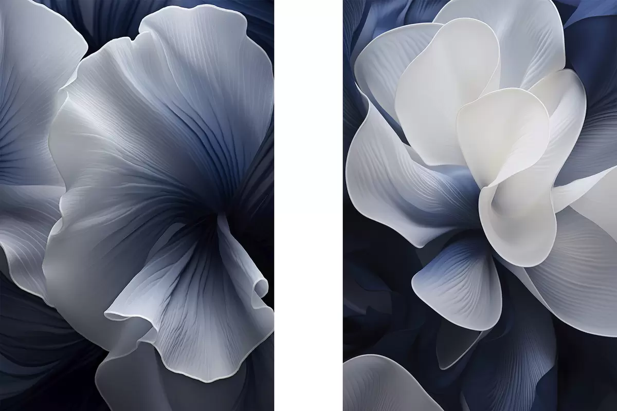 Picture Abstract blue and white flower petals with dark background Nr m30316