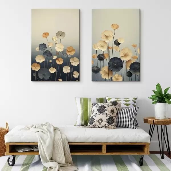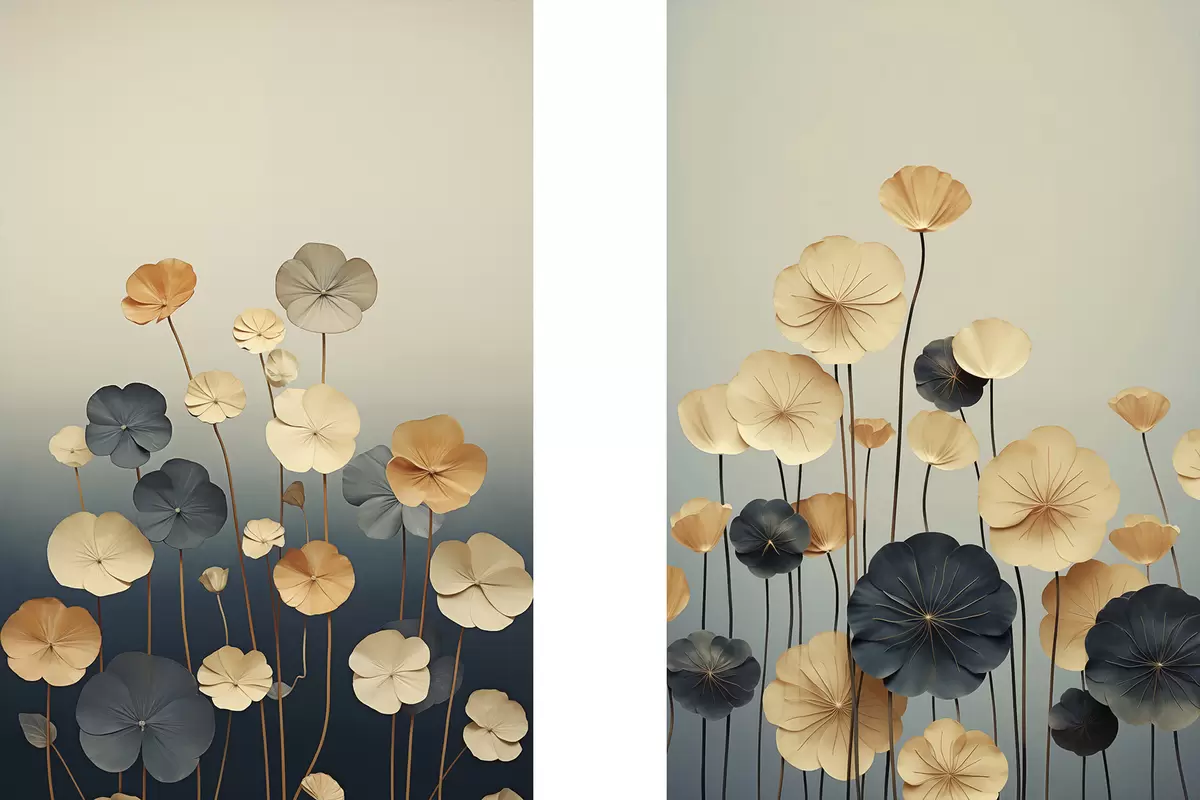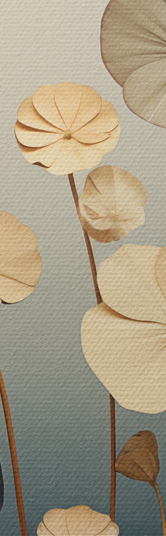 Picture Water lily leaves against a muted background of beige and dark blue Nr m30317