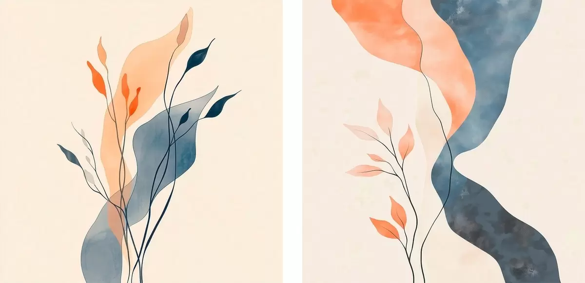 wall murals Decorative branches with thin lines in a contemporary painting style m30346