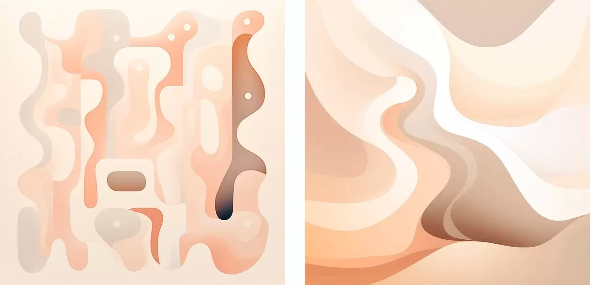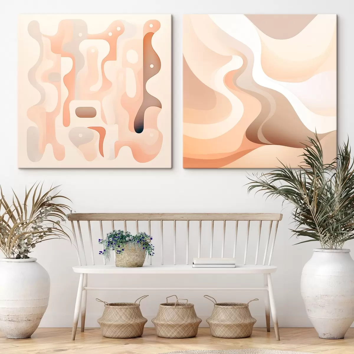 wall murals Abstract composition with flowing lines and volumetric forms in a beige-brown palette m30349