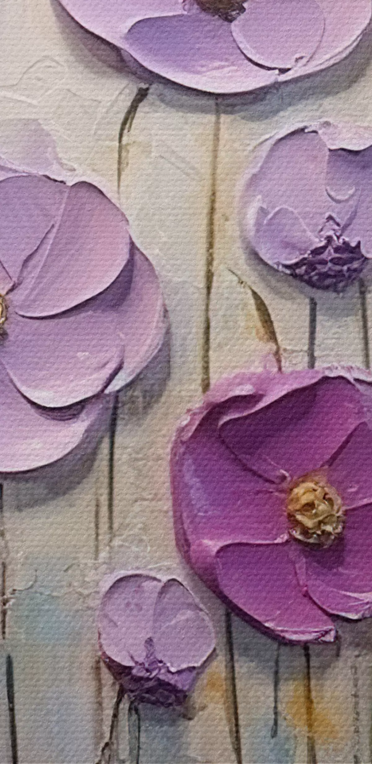 The painting can be hung immediately after receiving it. The painting will be stretched on 2 cm wide wooden stretcher.