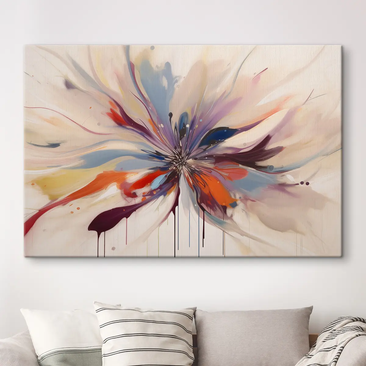 The painting can be hung immediately after receiving it. The painting will be stretched on 2 cm wide wooden stretcher.