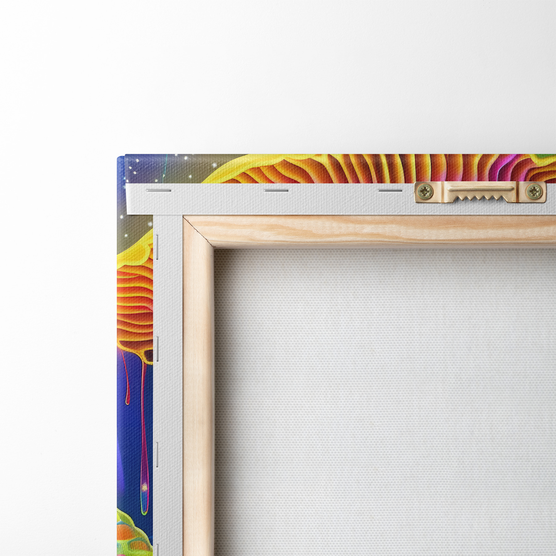 To stretch the canvas on stretcher bars without damaging the image, we use mirrored image.