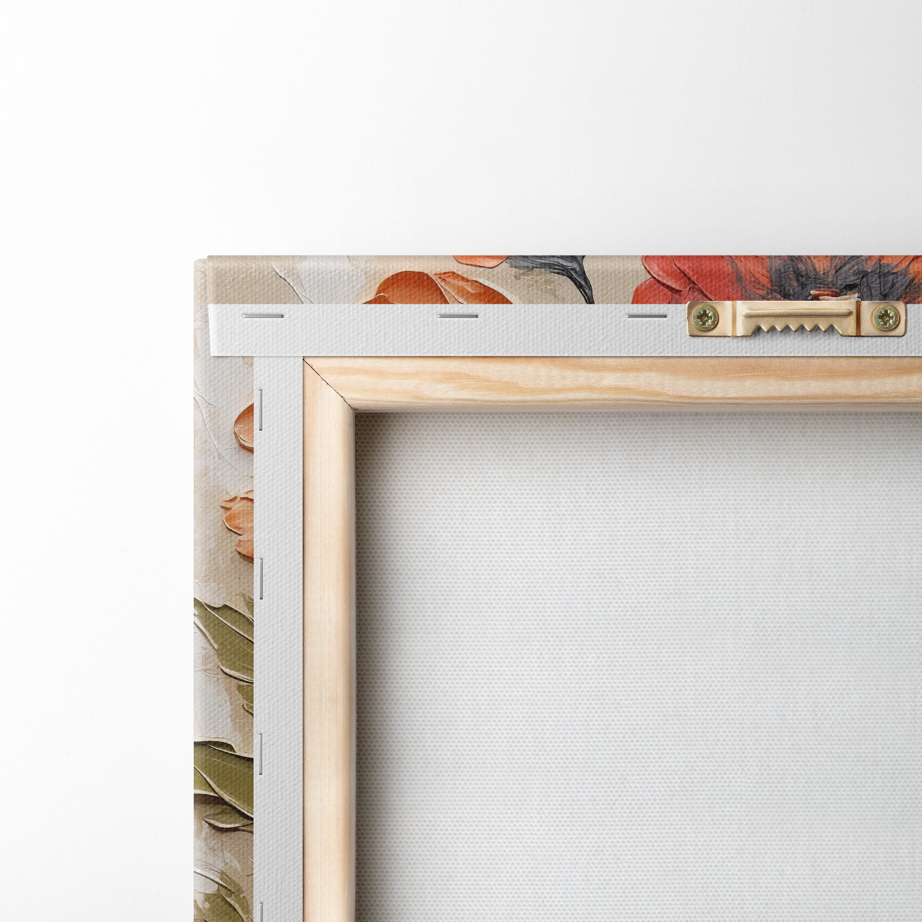 To stretch the canvas on stretcher bars without damaging the image, we use mirrored image.