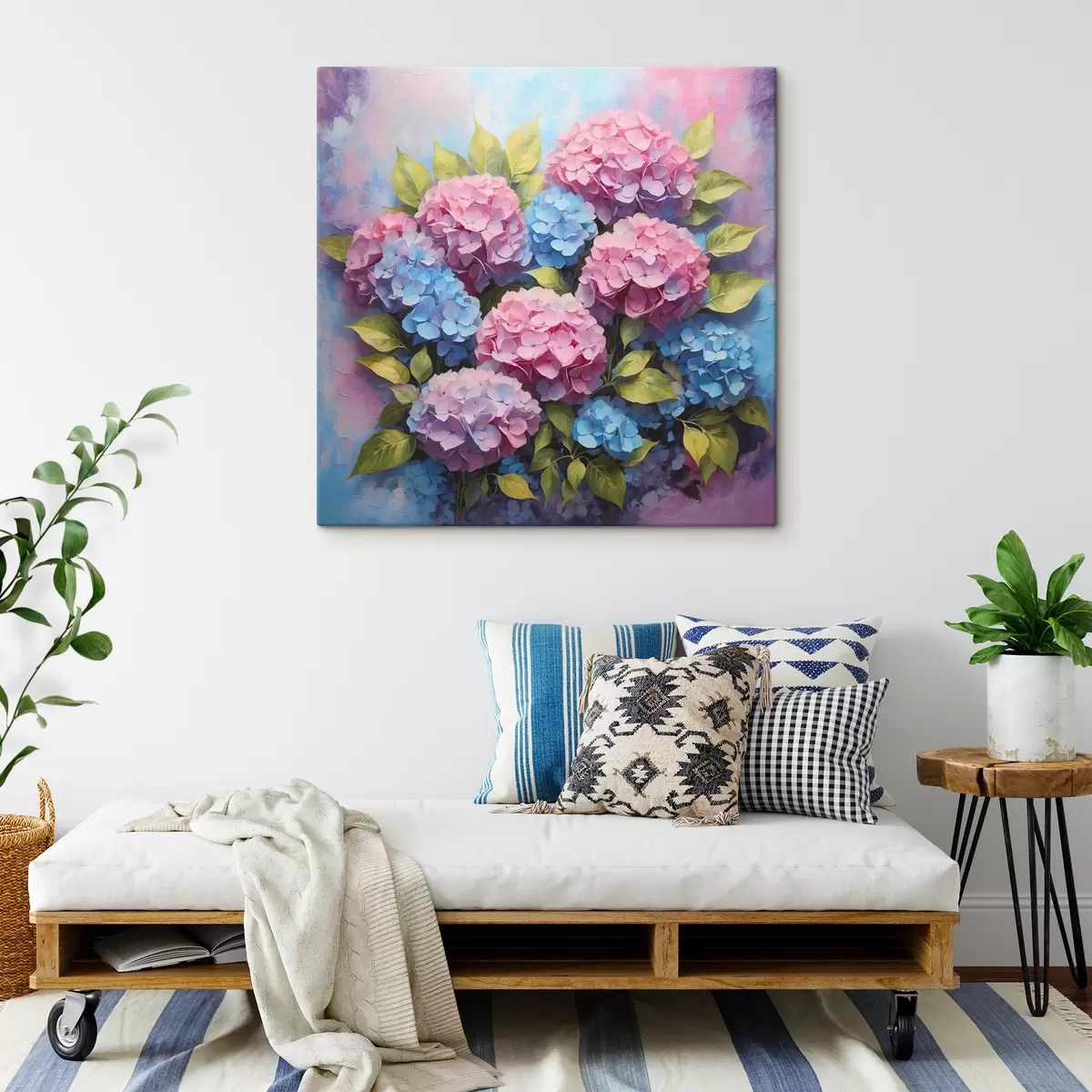 The painting can be hung immediately after receiving it. The painting will be stretched on 2 cm wide wooden stretcher.