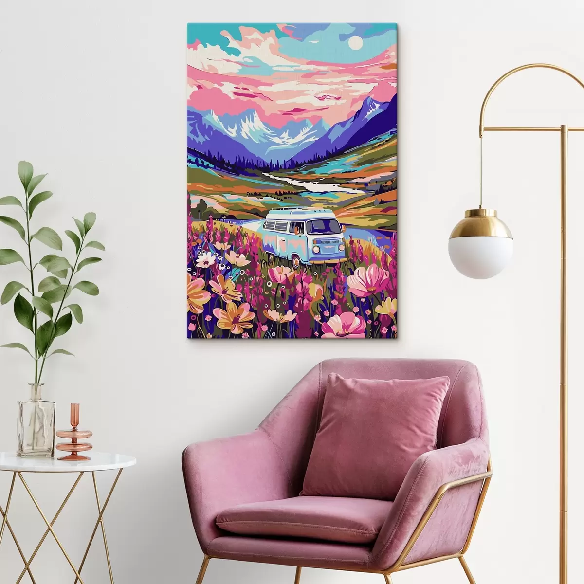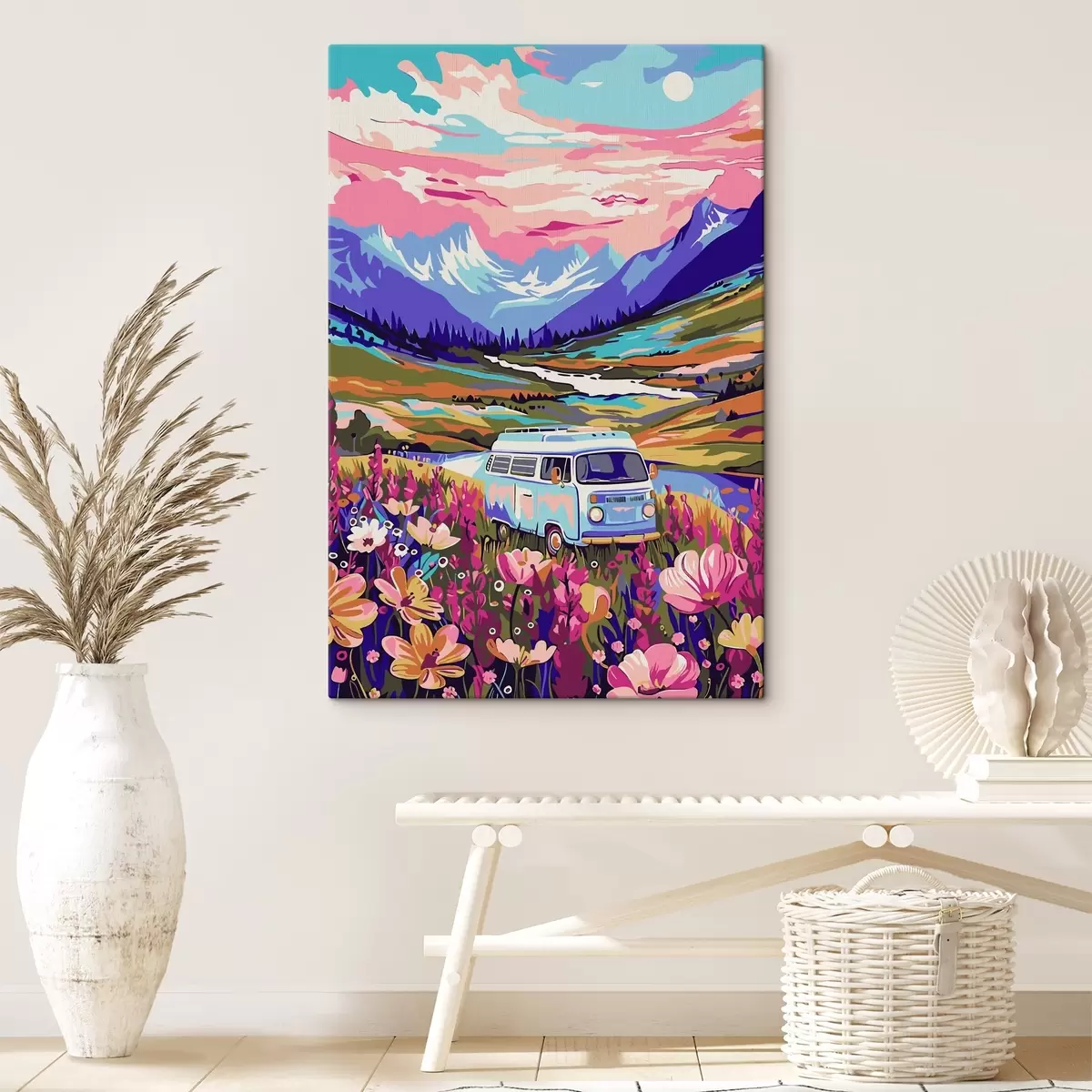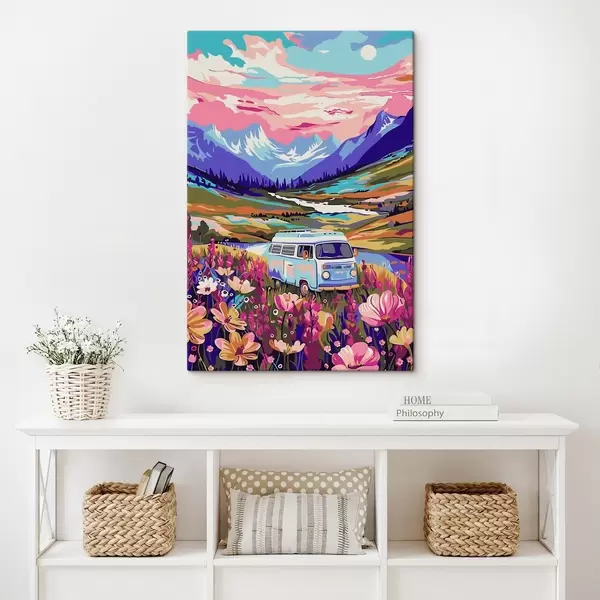 Picture A van driving through a field of flowers Nr s38260