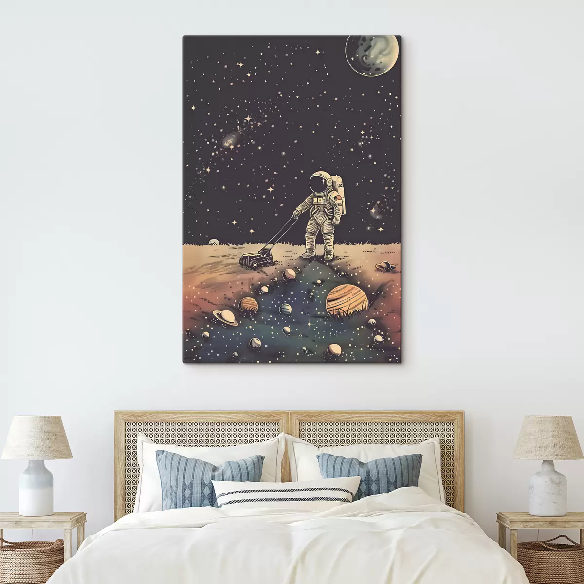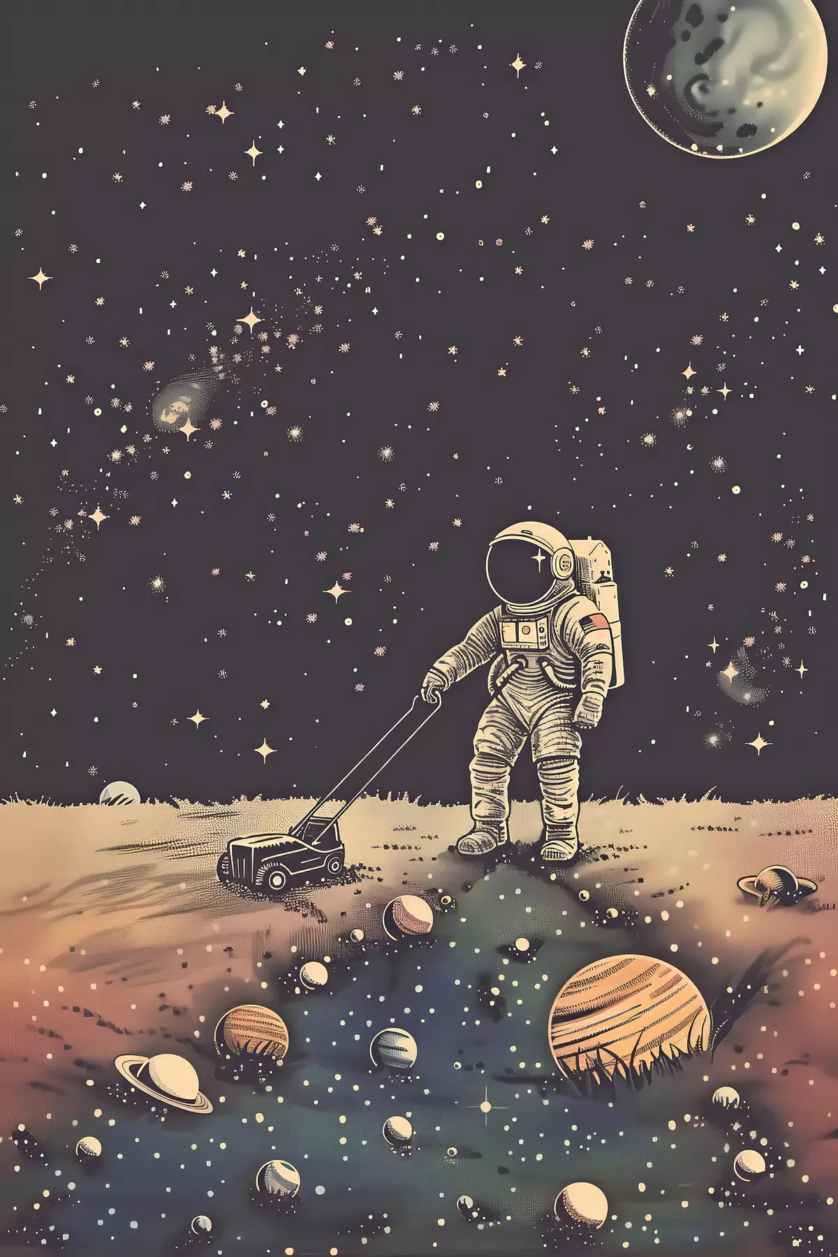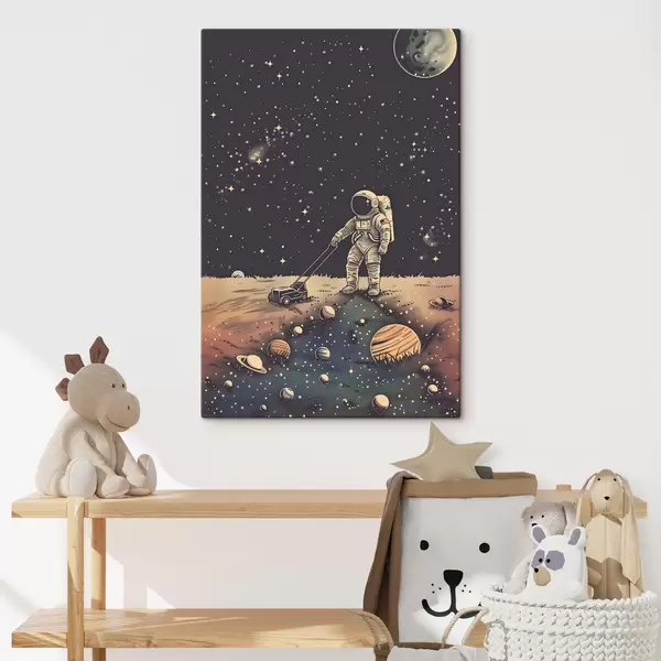 wall murals Astronaut with lawn mower in space s38637
