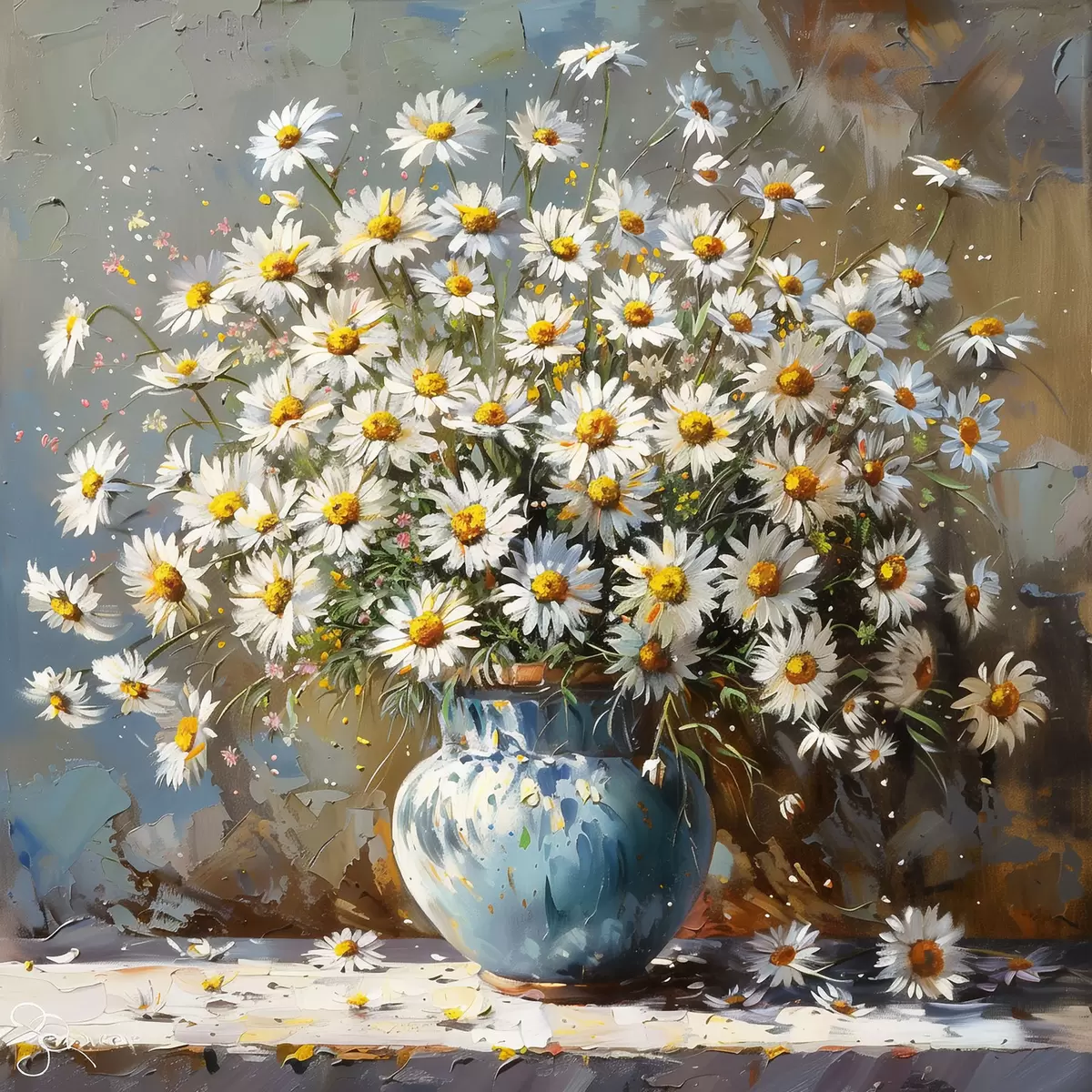 Picture Vase with daisies on the table Nr s38707