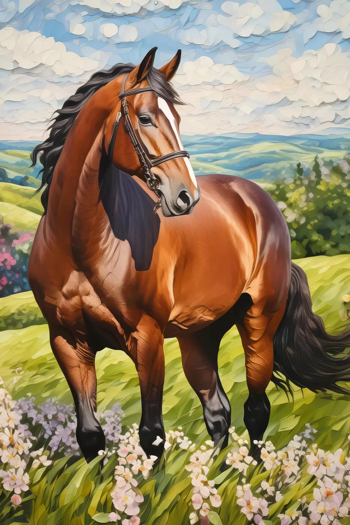 Picture Beautiful horse on the lawn, blue sky Nr s38727
