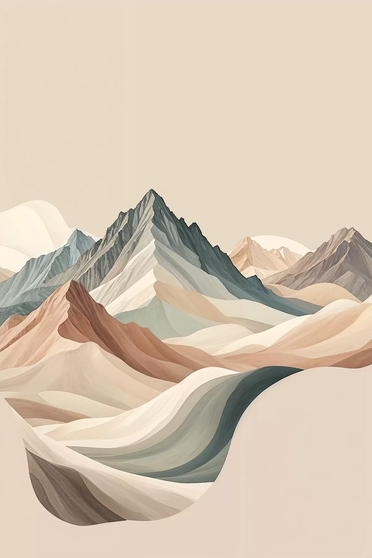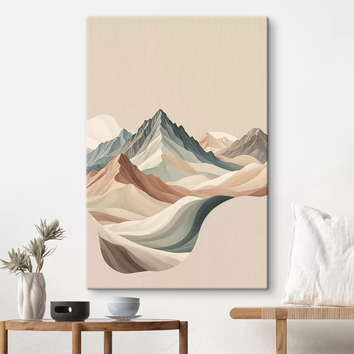 Picture Minimalism mountain landscape with rocky peaks and rolling hills in beige Nr s38770