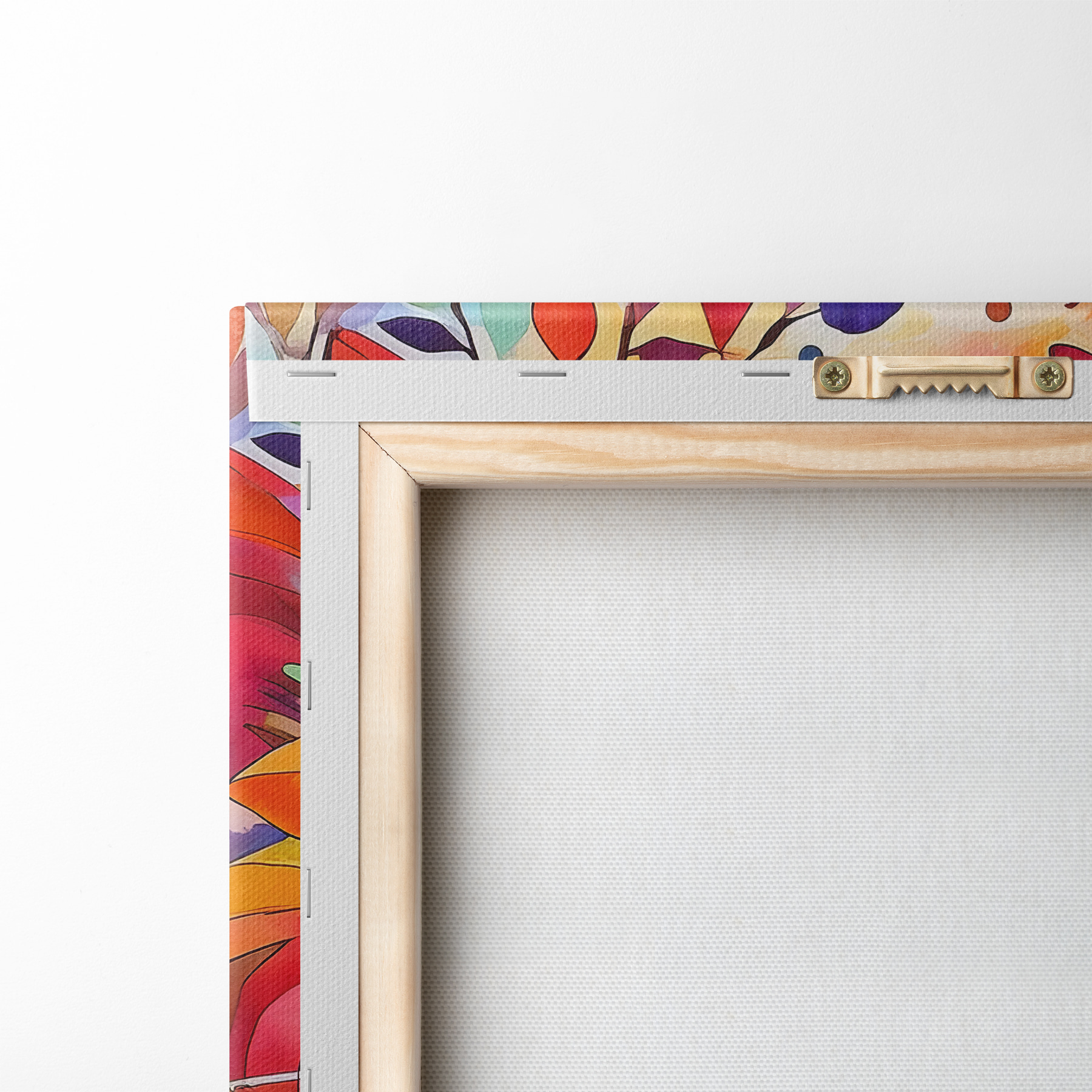 To stretch the canvas on stretcher bars without damaging the image, we use mirrored image.
