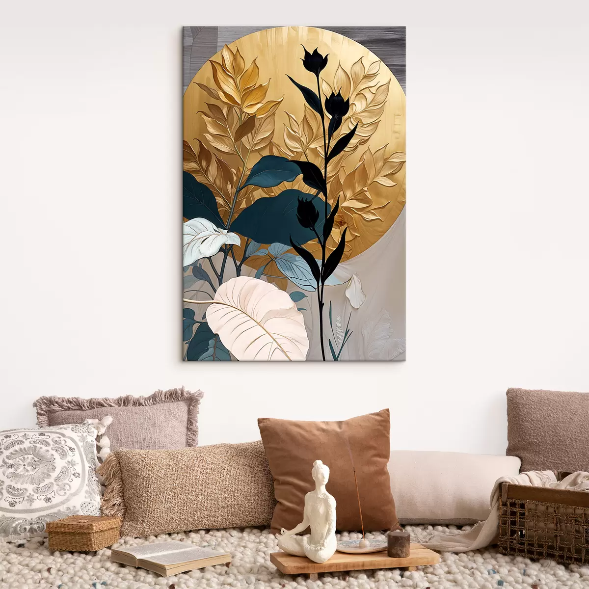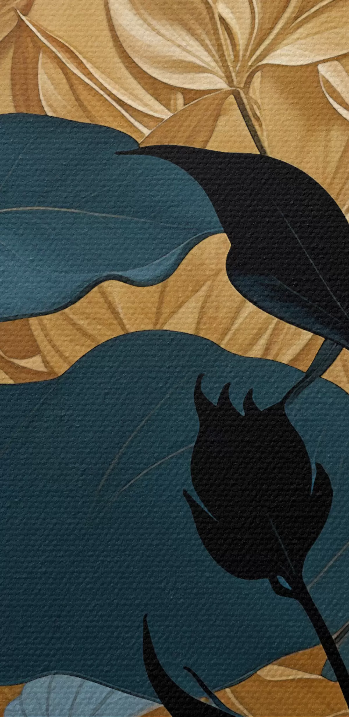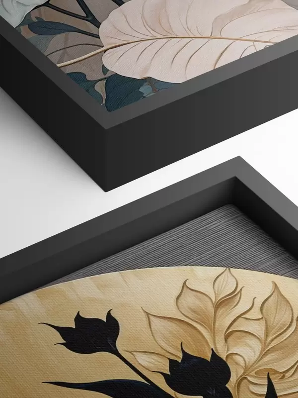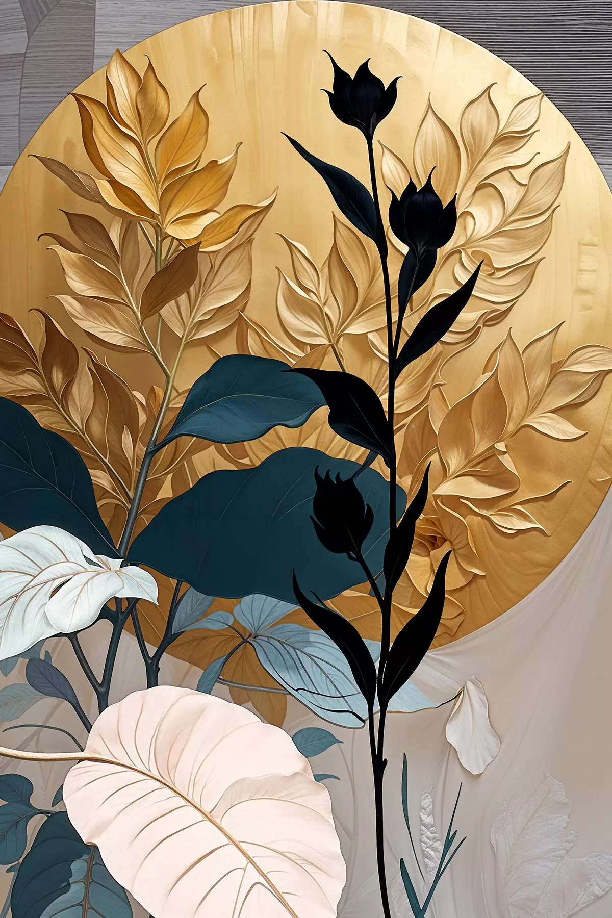Picture Abstract floral composition featuring large leaves and dark silhouetted shapes Nr s38822