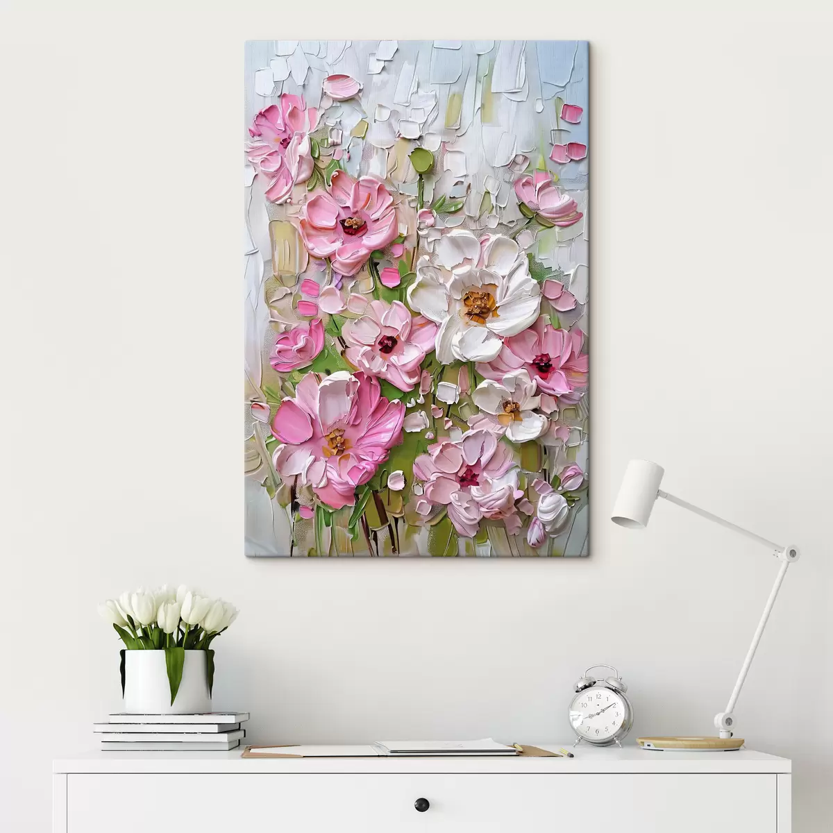 You can hang the picture on screws. To do this, we include fixtures with our pictures, which will make it convenient to hang the picture.
